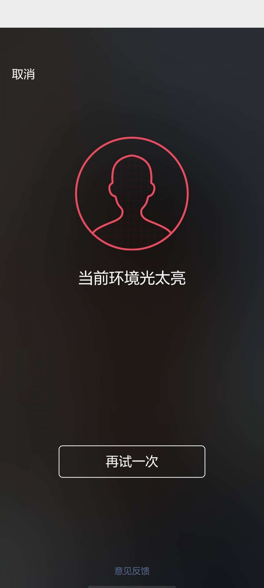 10点23分55秒,本人走进内巷,打开粤省事,登录查看电子证照,但是由于阳光光线太猛烈,小程序提示光线太亮,无法识别人面。(如下图)我把微信完全退出重新登陆并再次打开粤省事小程序,准备继续再次人面识别。