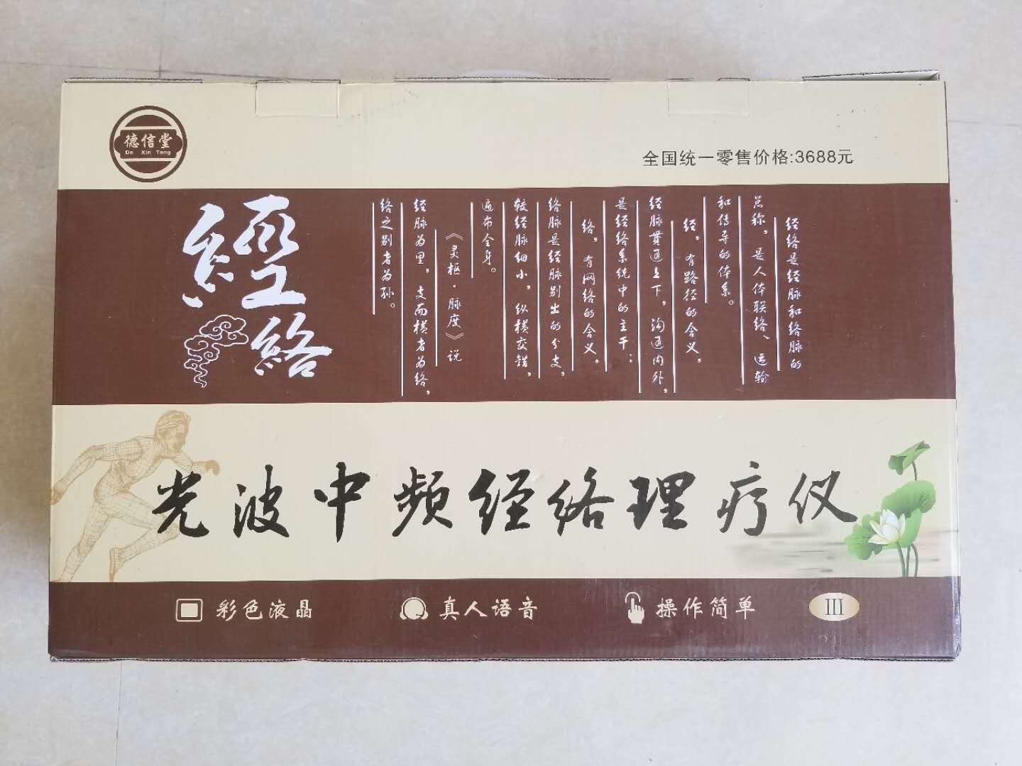 德信堂光波中频经络电疗按摩仪 多种按摩理疗功能,足疗拖鞋火罐。功能齐全九九新 买回来用了几次激光电疗。其他配件没用过。移动公司那员工护理活动3500大洋买的,现2000元出让。需自提。联系电话13580040869