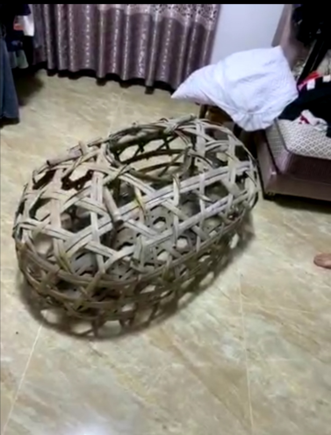 明明鸡笼来的,视频上说猪笼,通报说竹笼,