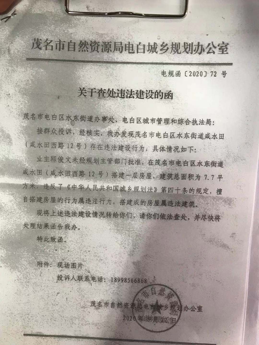 我是广东省茂名市电白区水东镇成水田西路的一户居民