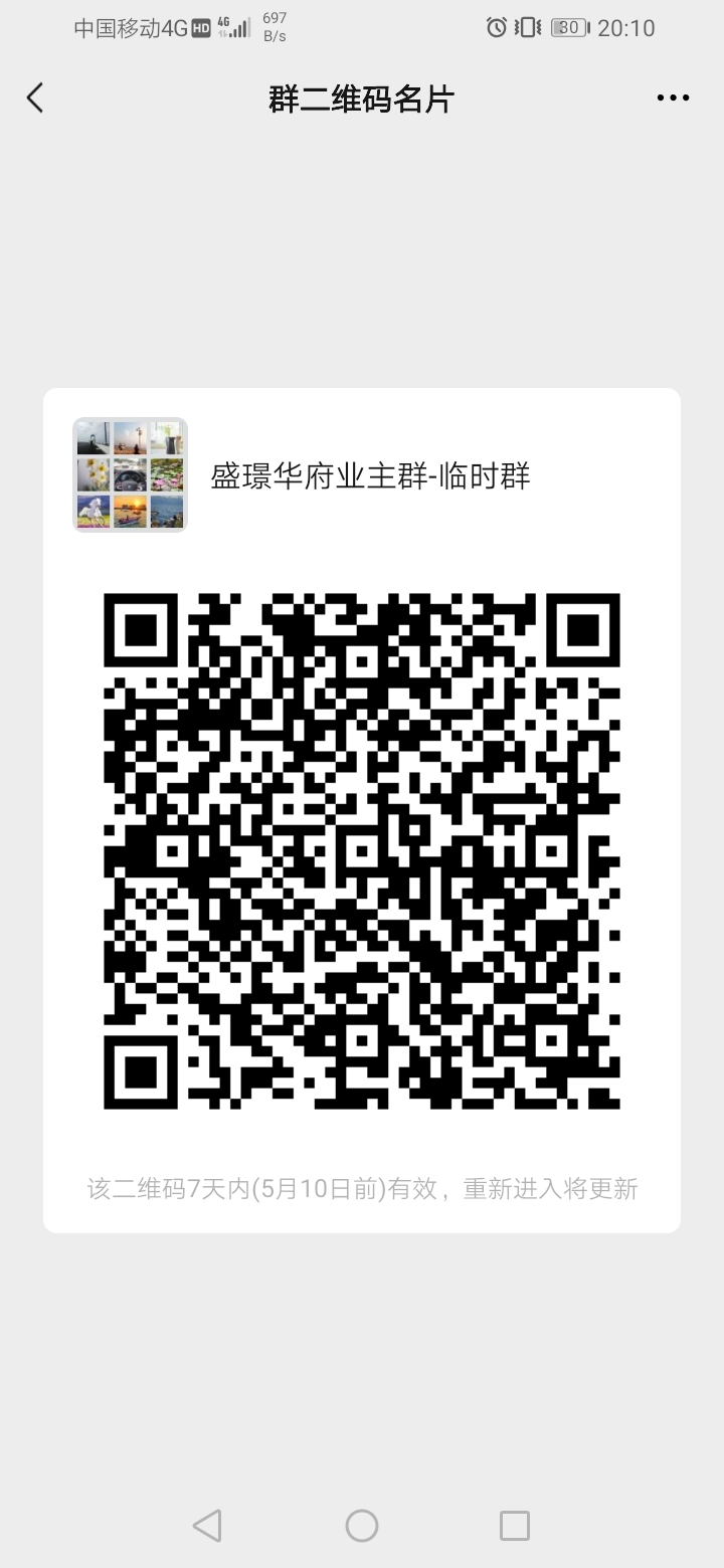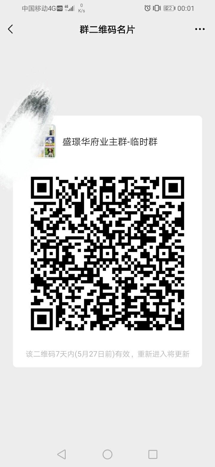 各位网友,盛璟华府已经成立了业主群,为了方便其他未进业主群的业主加入群聊,个人经过思考,成立了一个临时业主群,业主可以随时扫码加入群聊,进去临时群后,需要验证业主身份,才会邀请进业主群。感谢论坛提供这个平台给盛璟的业主交流。
