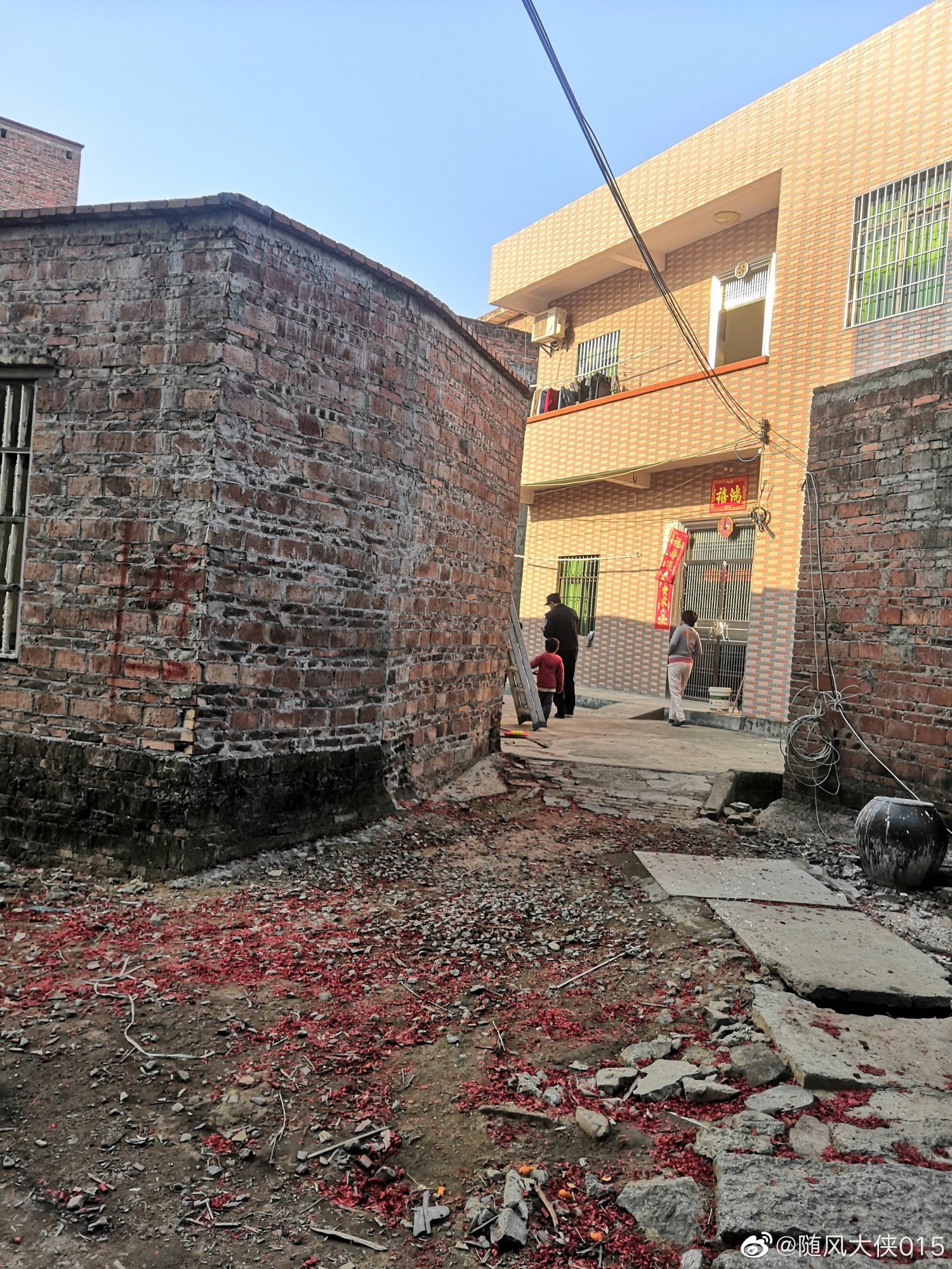 要求我让这么多,我二话不说就让了,村长也去做了公证人,建成后又经过政府部门调解,在没有达成共识,而且我家中没有一个人,也没有向相关部门汇报的情况下,他们两家人竟然敢带着铁锤,电锯,手磨机等工具砸门而入,对我家楼顶,厨房,烟囱,厕所的地方疯狂打砸!比土匪还要猖狂,都说日本鬼子进村会杀人越货,纵火烧房,可现在是共产党领导下的法制社会啊!这是公然挑战法律啊!这是谁给他们的勇气?老婆帮忙扶梯子,老公上楼顶砸房子,2家人分工合作,面对围观的村民大声喊,凡是来帮忙的梁文光都会给工资!很威风吗?