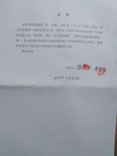可怜我87岁的奶奶常常以泪洗脸,每次回家她都会问我事情处理好了吗?她总是担心我的安全,叮嘱我不要冲动,不要和别人吵架,晚上一个人不要外出,怕我遭遇不测,我父亲也是一个胆小怕事的人,大声话都不敢讲,为人子孙,我感到非常羞愧,你们本该安享晚年,可现在却让你们操碎了心,请你们放心,法律是公正的,一定会还我们公道。在电视剧(人民的名义)中,老检察长陈岩石有段话说的很好:“人民警察,人民公安,人民法院是为人民服务的,不是为人民币服务的”!打击黑势力,打击犯罪,保护一方安宁是公检法的神圣职责,梁文光,梁瑞南,梁浩利用家族兄弟多,有钱,横行乡里称霸一方,欺压残害百姓的行为是和谐社会的大毒瘤,他们的存在严重影响了人民群众的获得感,幸福感,安全感,希望公安机关秉公执法,将他们捉拿归案,坚决扫除黑恶势力,使人群中能安居,安业,安心,带着满满的安全感迈向全面小康社会。