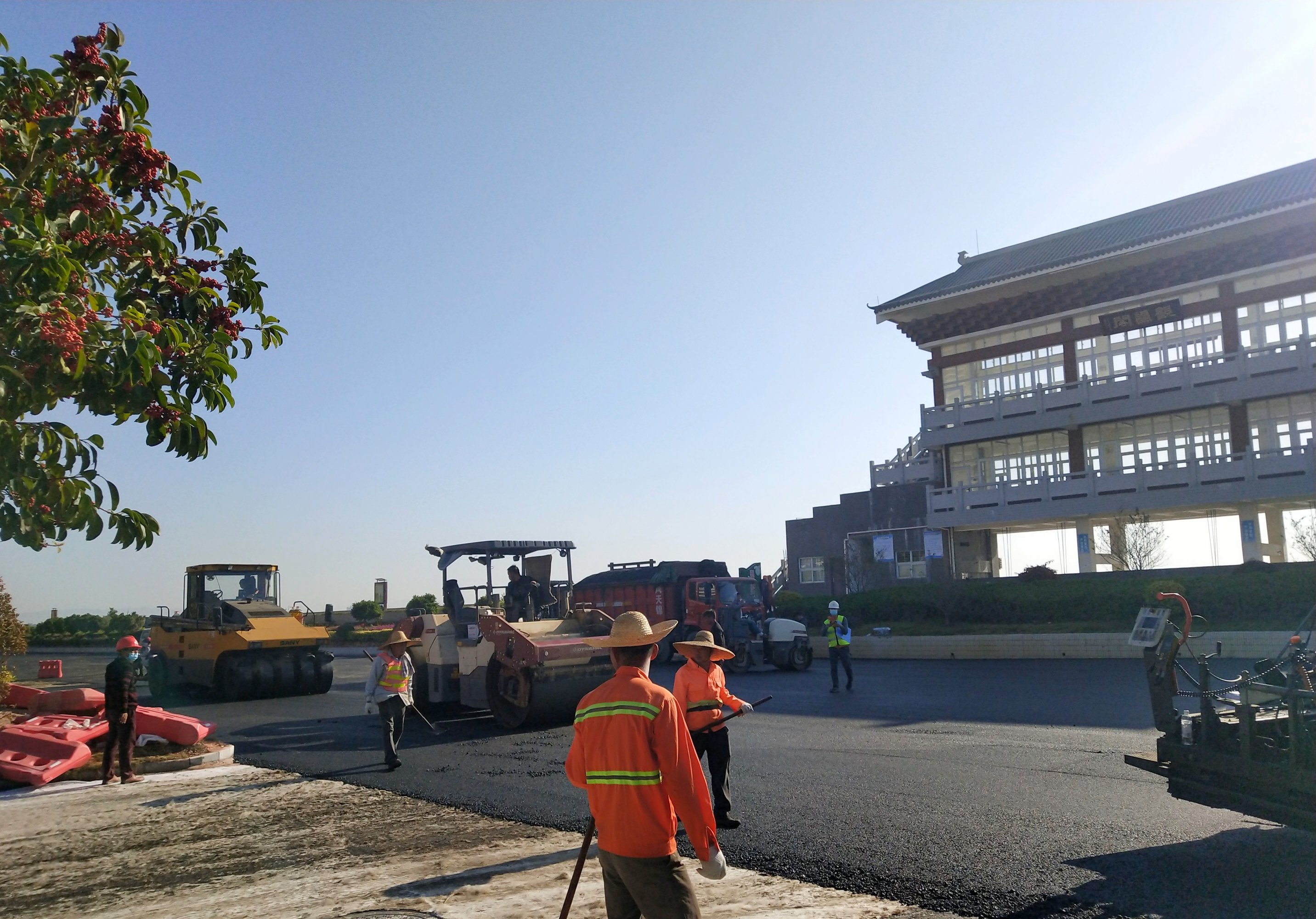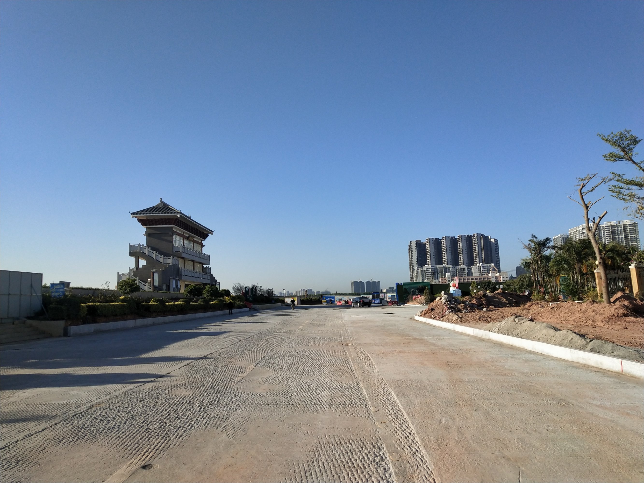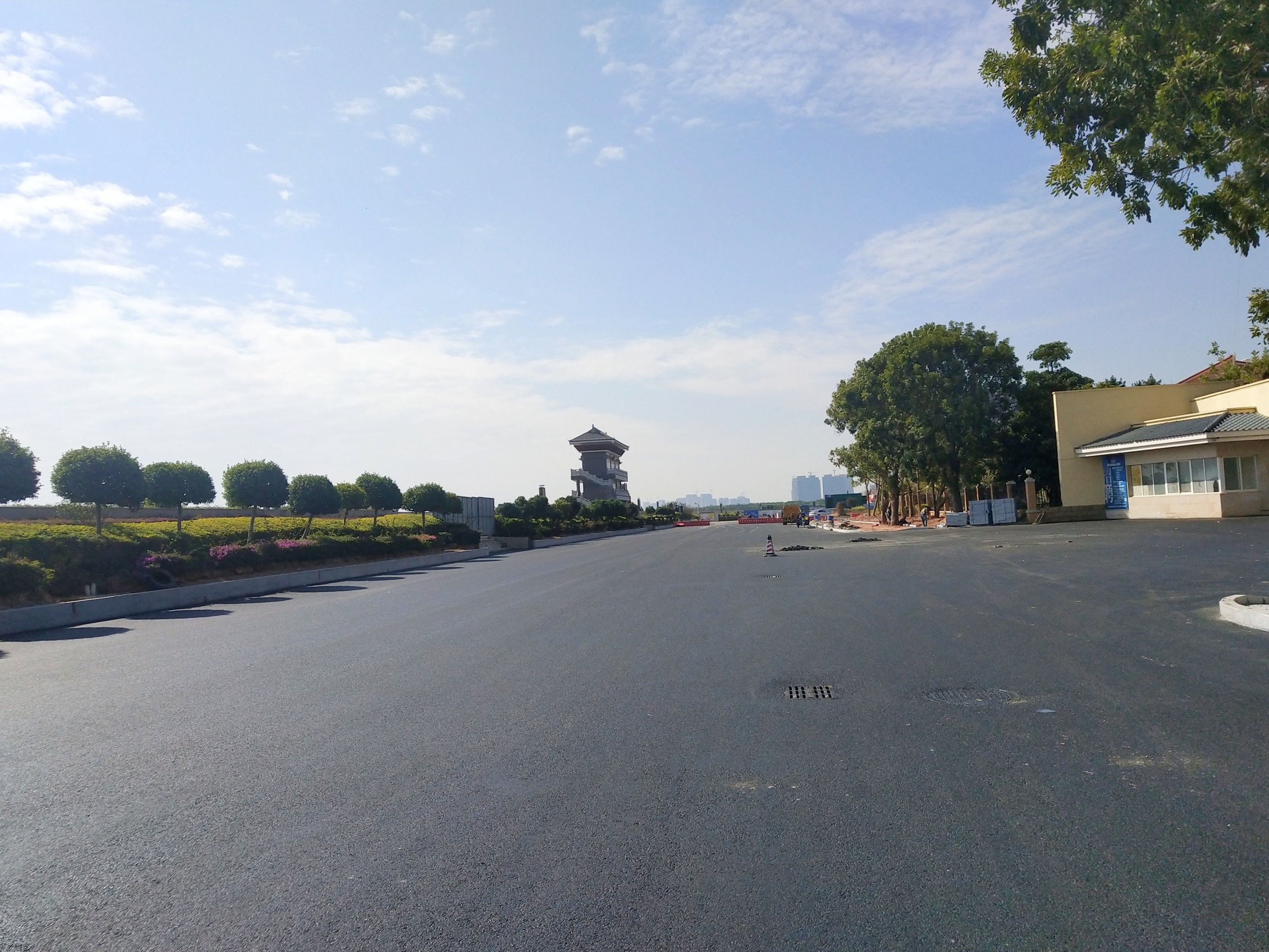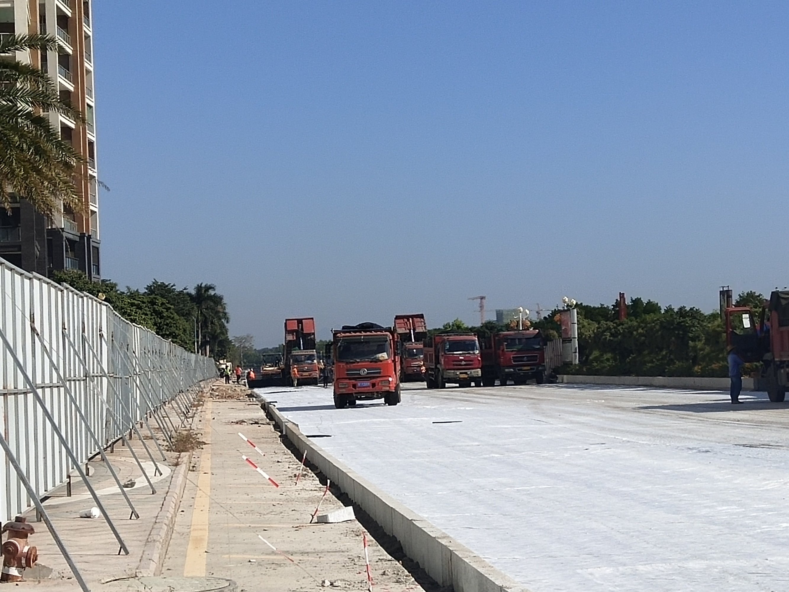 以为贴这不见了,见表面铺一层白色垫布,施工不能进也不想进,见到远处有铺沥青机装沥青车辆,像从海滨登步大桥那边,向观鹭阁这边铺设过来,机械声,运输车辆不停奔驰