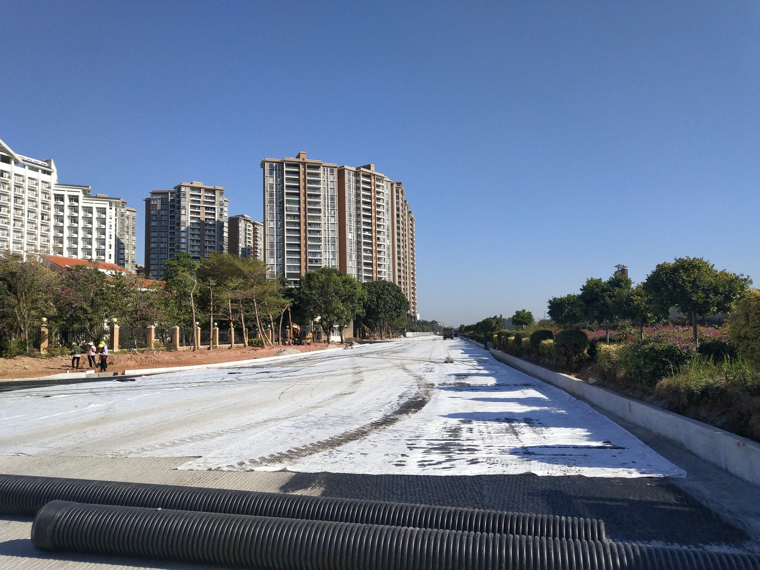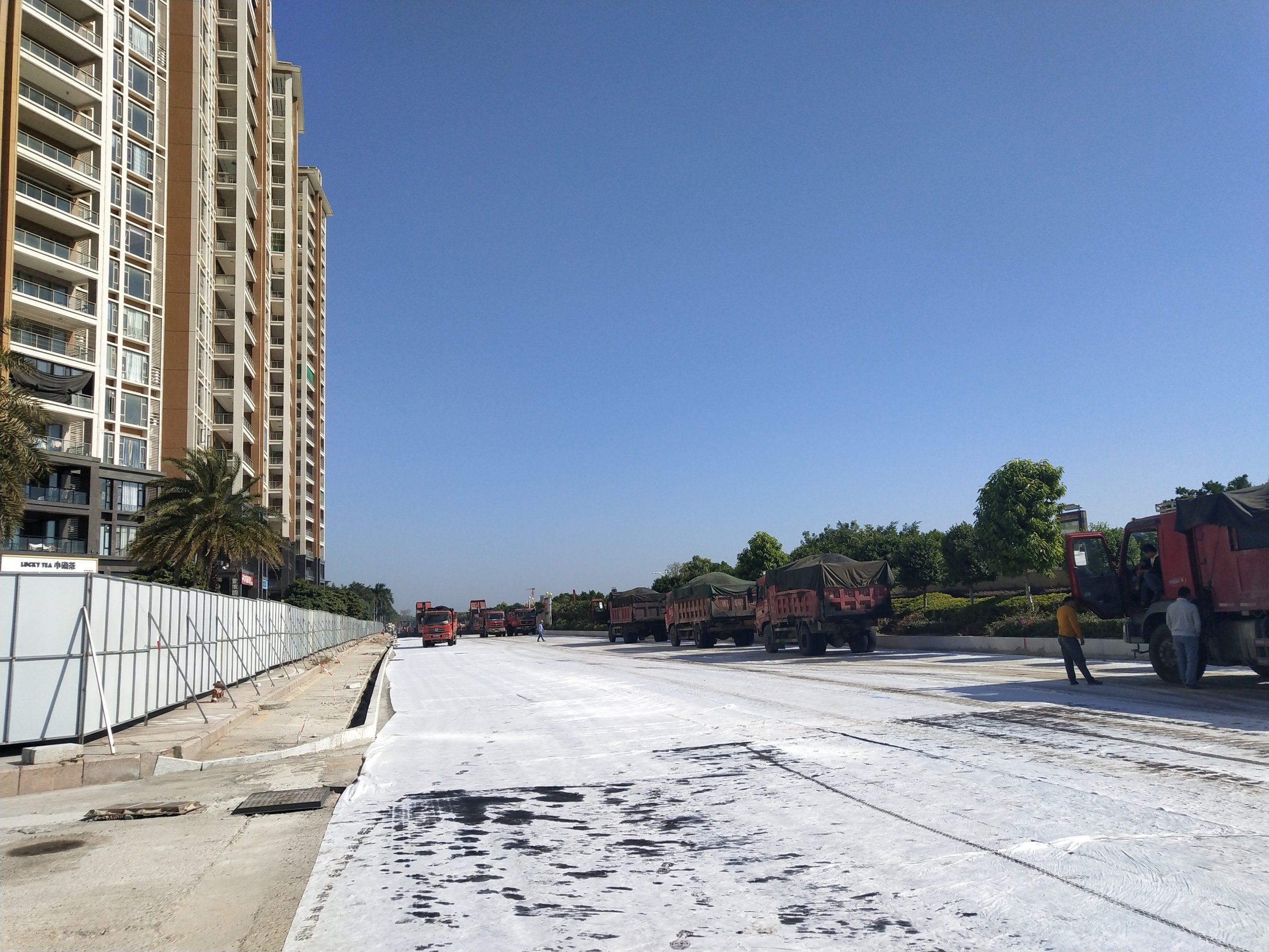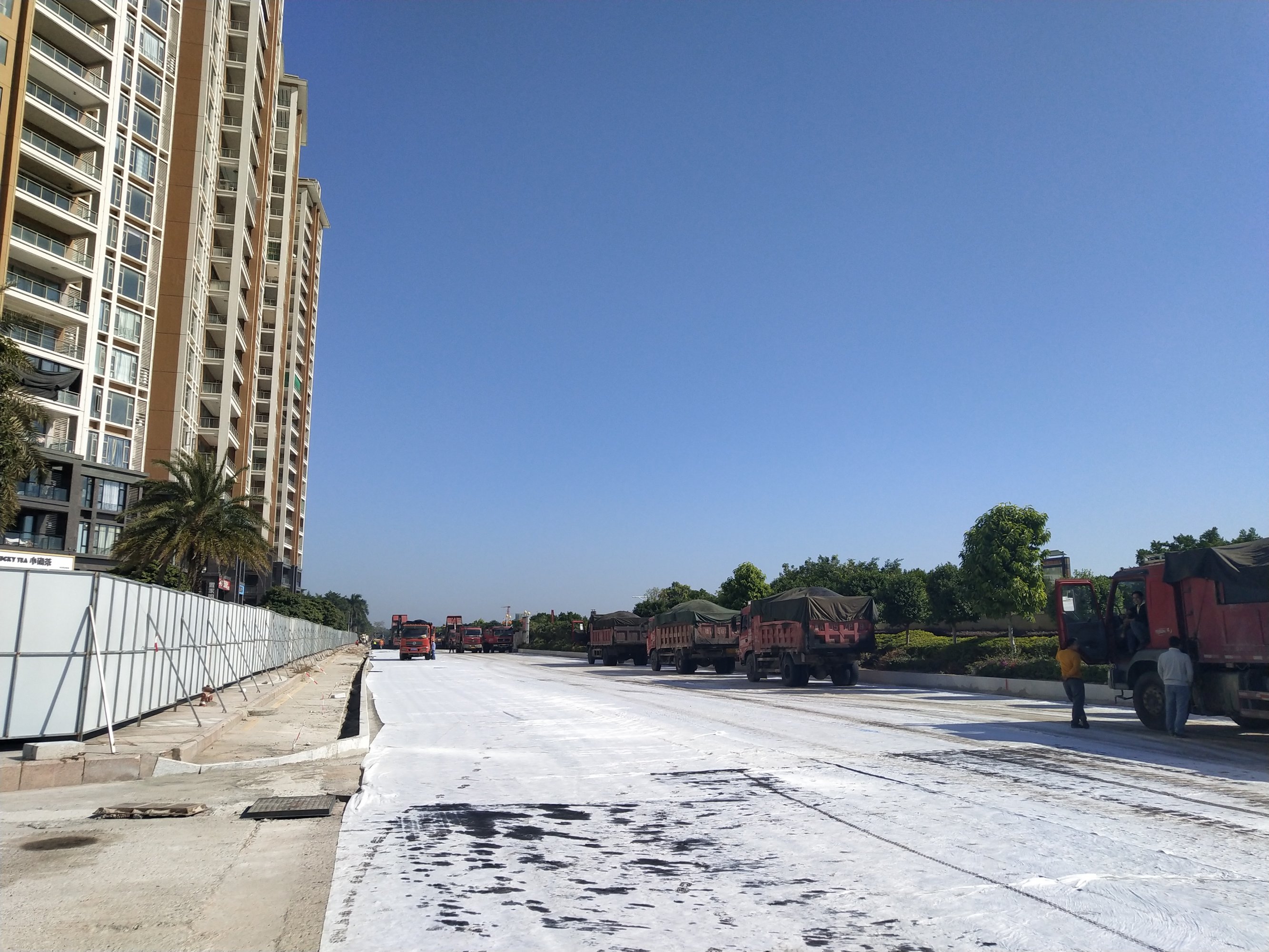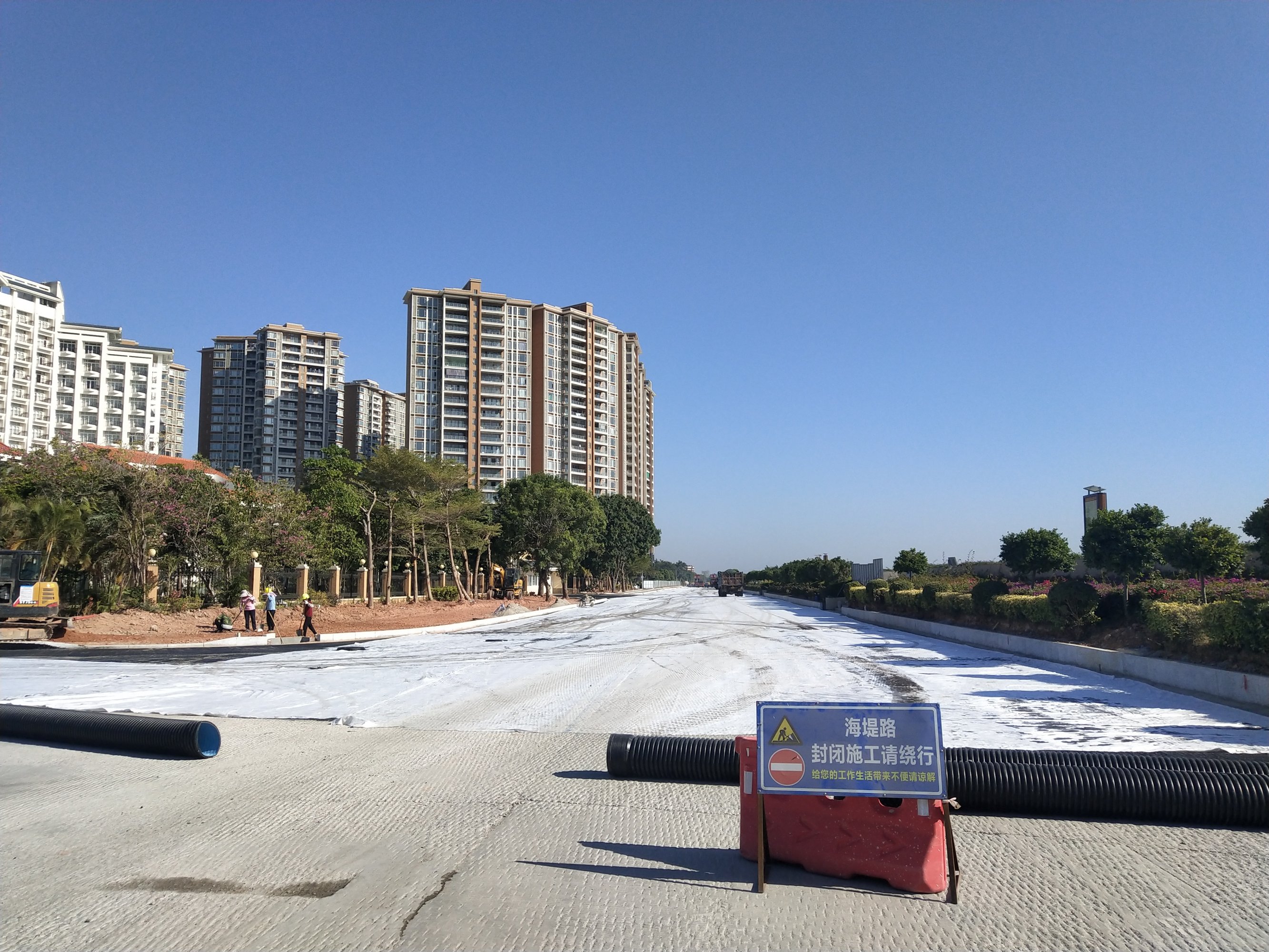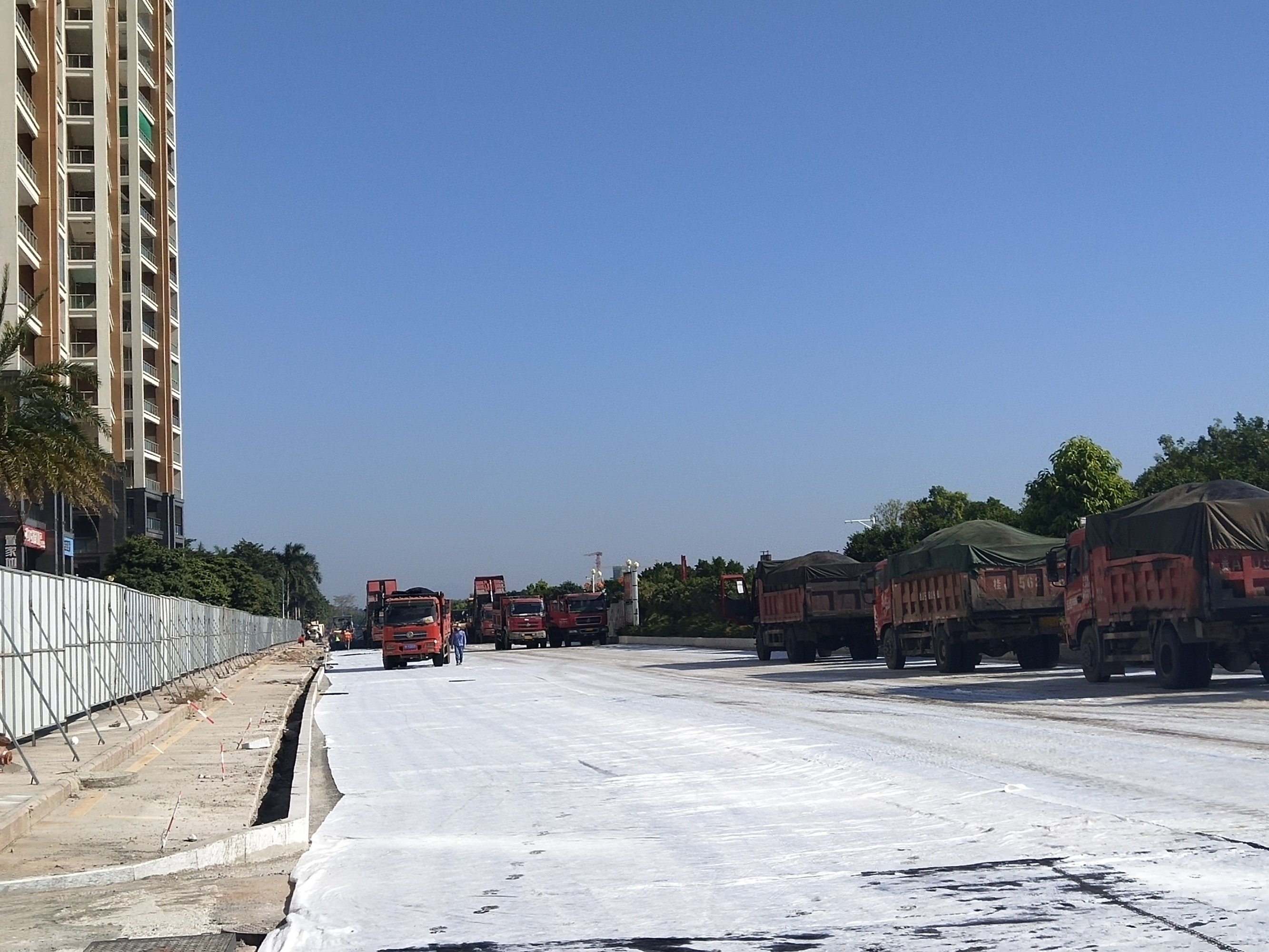 以为贴这不见了,见表面铺一层白色垫布,施工不能进也不想进,见到远处有铺沥青机装沥青车辆,像从海滨登步大桥那边,向观鹭阁这边铺设过来,机械声,运输车辆不停奔驰