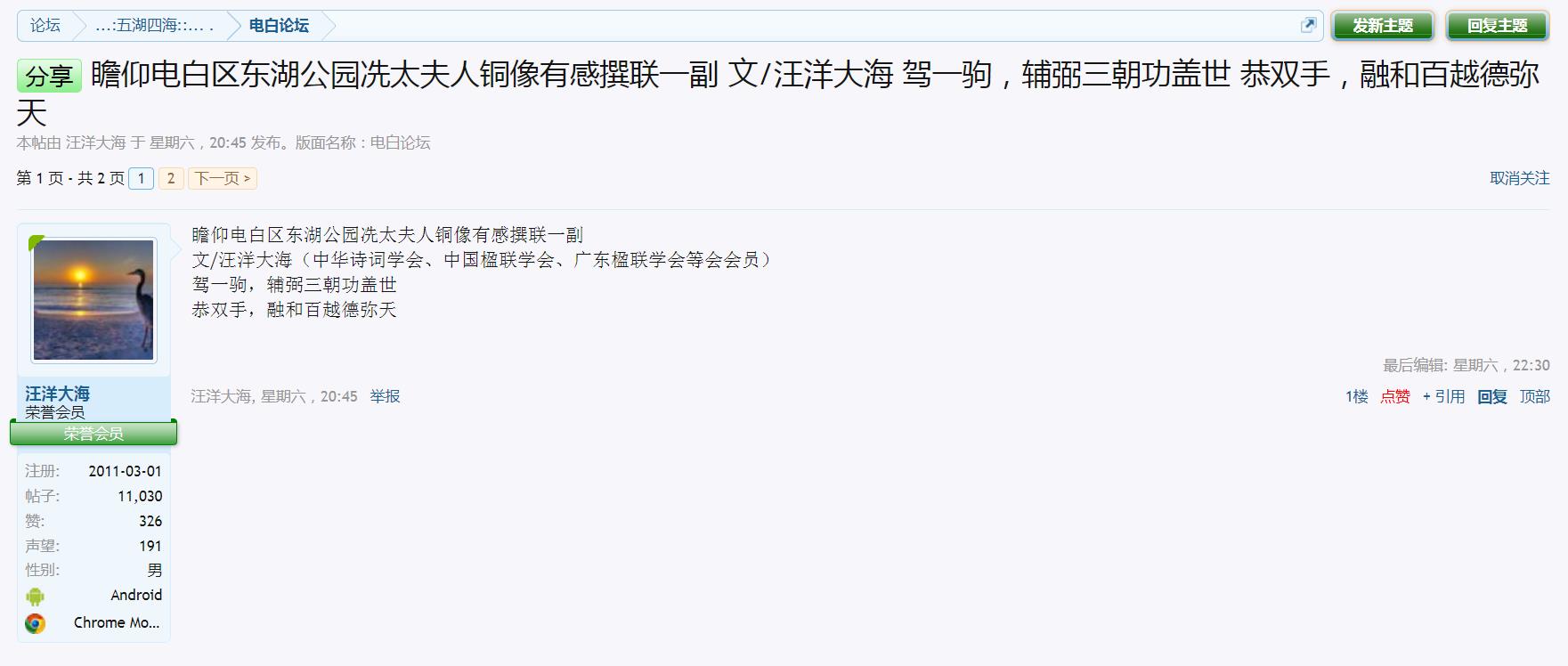 文/汪洋大海(中华诗词学会、中国楹联学会、广东楹联学会等会会员)