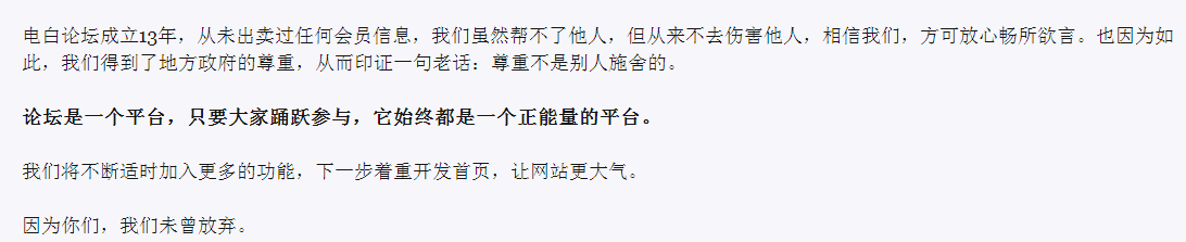 明明早在几年前已经删除的帖子为什么偶尔会出现一次?说实话,我是很信任电白论坛的,在这个论坛虽然很久才上一次,但是也在这里泡了七八年了,有什么也喜欢发帖子说,但是为什么之前发的一篇帖子明明2019年已经删除了为什么还会再次出现?究竟是为了什么? QQ图片20220126004430.png以前看到论坛介绍有种热血沸腾的感觉,如今看着是否有点讽刺? QQ图片20220126004332.png在我们放心畅所欲言的时候,被删除的东西却接二连三的出现,请问我们是否还能真的放心?