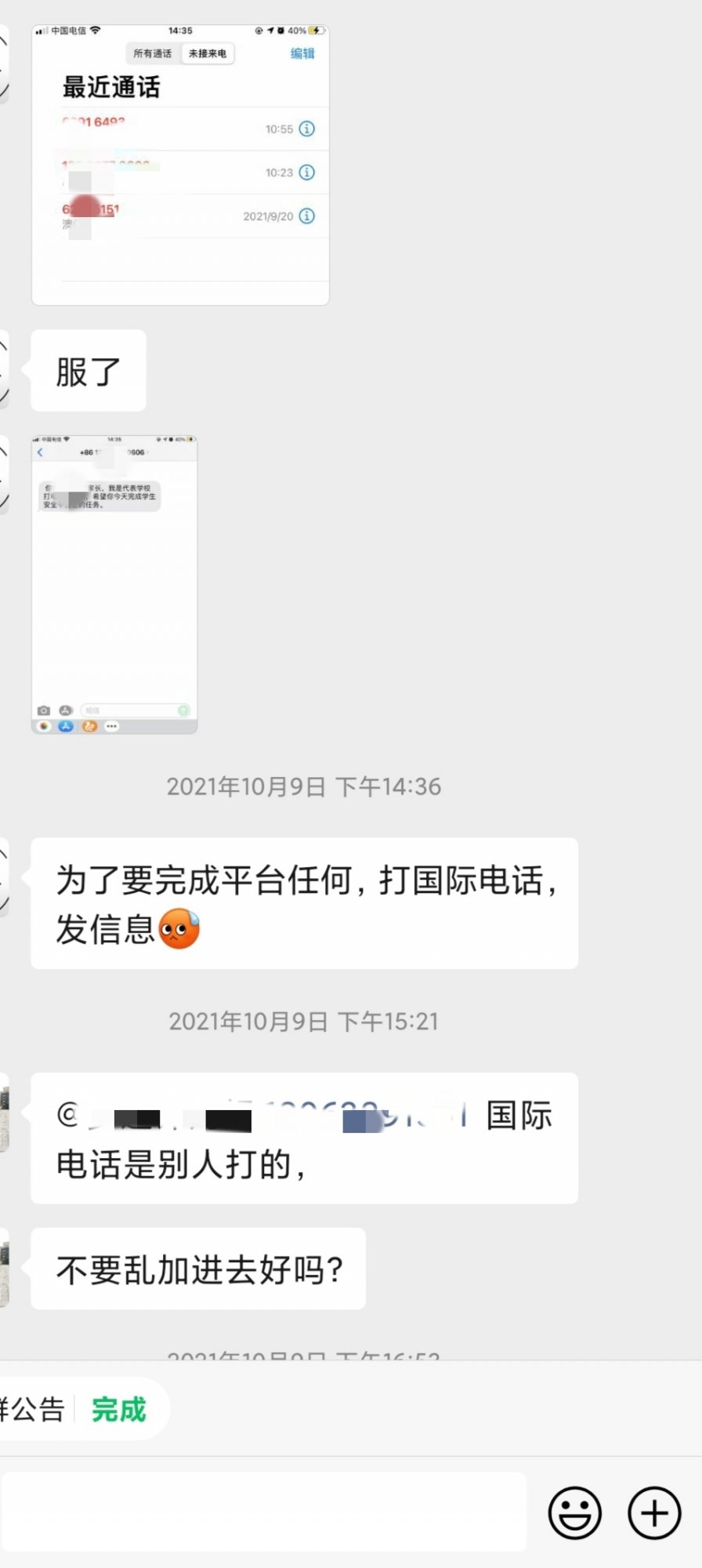 现在几乎什么时候有空什么时候完成,群里的大堆垃圾信息再与学习无关,早已不关心群里发生了什么,通知了什么,只有被老师圈的时候才知道任务漏了没完成。这样的手机任务全由家长独立完成,我早已没让小孩一起看了,根本就没那个闲工夫一起研究,回来就是做不完的作业,有时辅导都忙不过来,班级微信群就不应该存在,这种东西已经变性成了家长们累赘,变成了政治性的任务,变得了毫无意义。