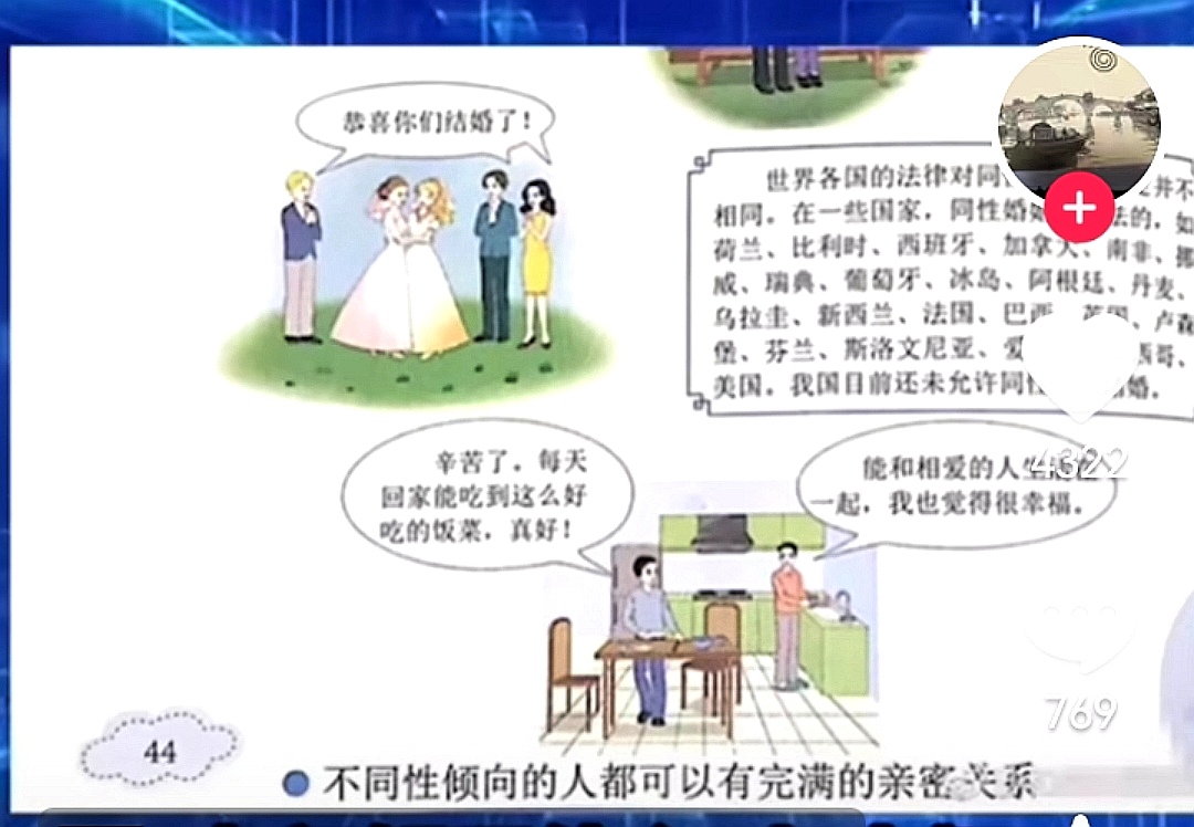 丢卡奶,国家的教科书,竟然向我们的中小学生鼓吹同性恋,鼓吹不结婚不生育丁克,鼓吹青少年性交,这是什么世界啦,不怕下雨天,天黑打雷啦。