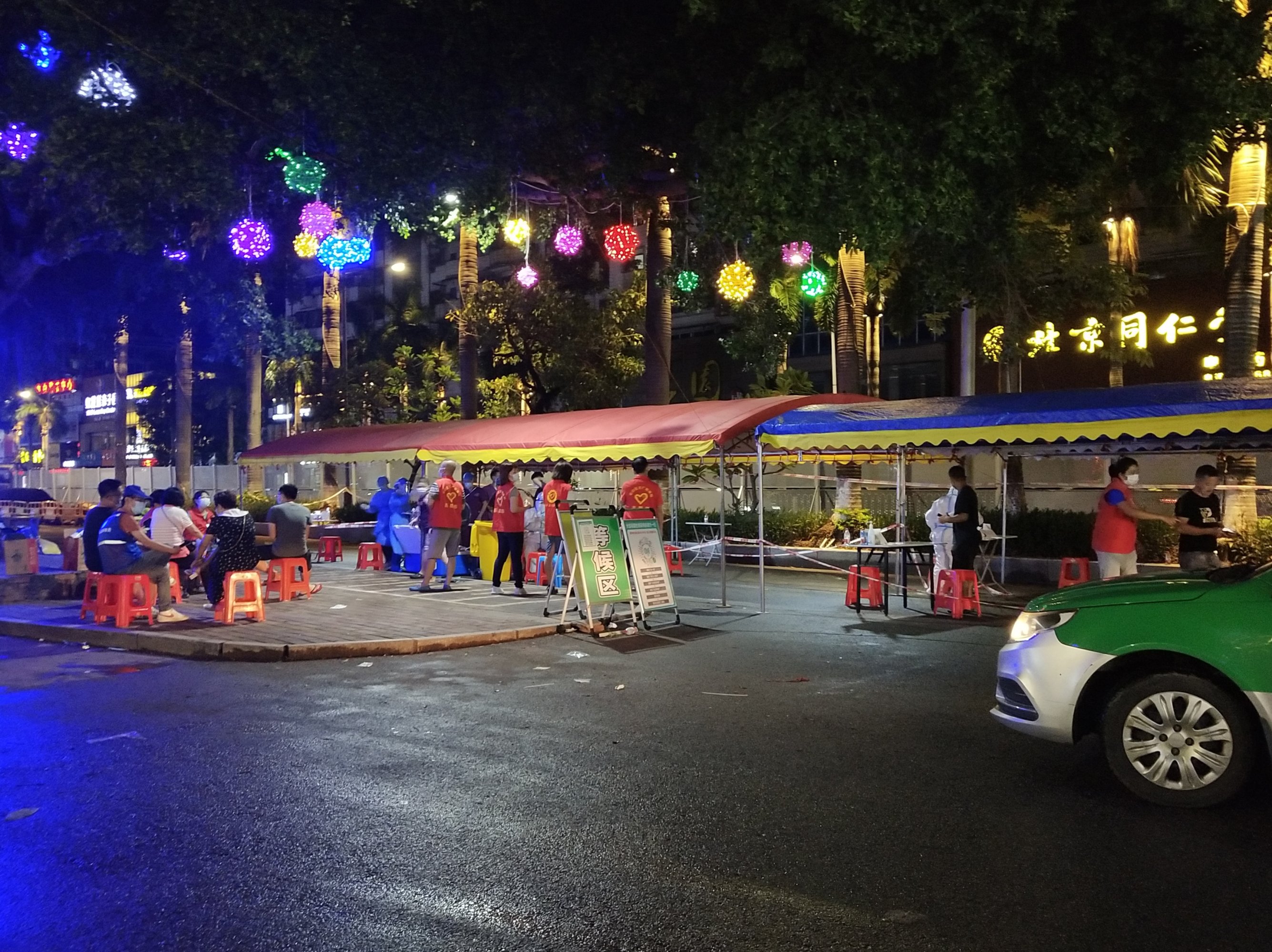 我特意在10点半钟后去看了看,有好些点诂计也没什么群众在排队,而医护与工作人员等逐渐收拾东西等待离场,而有些检测点还有零星个别群众还在做,所以,,而有些已离场的医护等人员,诂计是较远的?在会堂那边会合,有些诂计是较近的就扫辆共享,会堂那里有大巴与出租车停靠,这么晚了,我也不可能跑去看更多检测点,也不可能一一观看一一道来,只能简要顺便顺路走马观花而己,