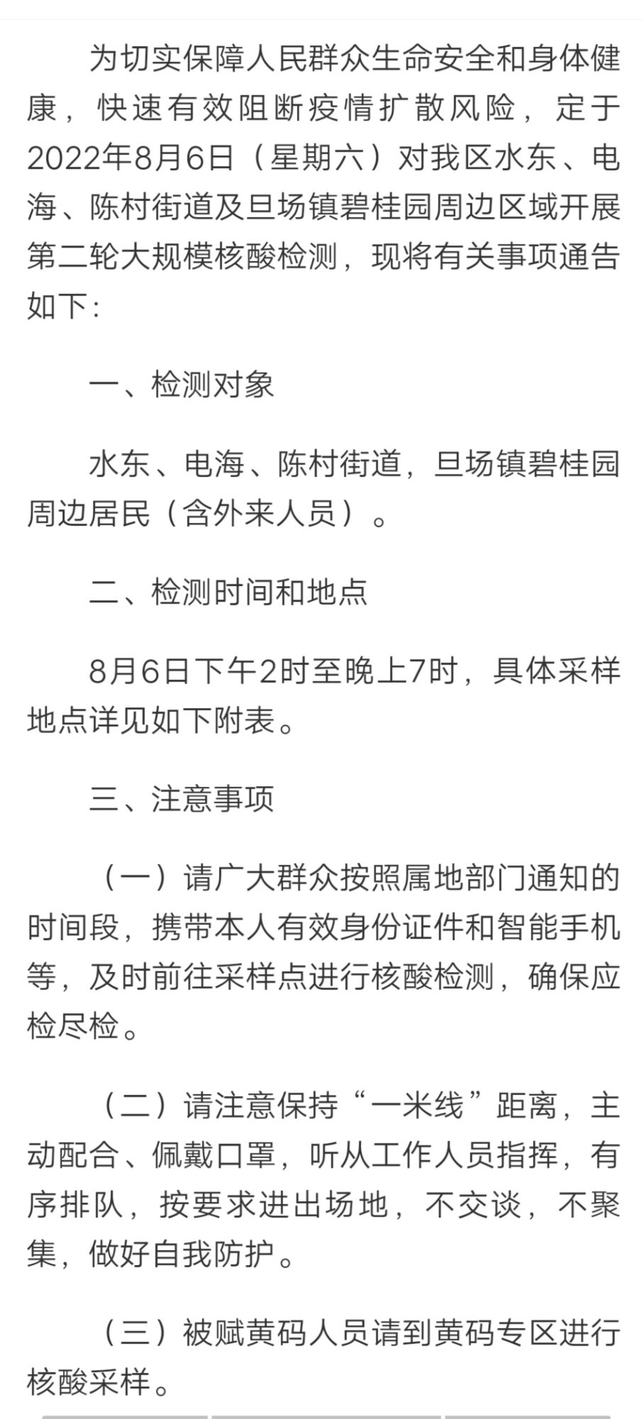 1检测对象,水东、电海、陈村、旦场碧桂园周边居民、外来人员.2时间地点,8月5日下午4时至晚10时?