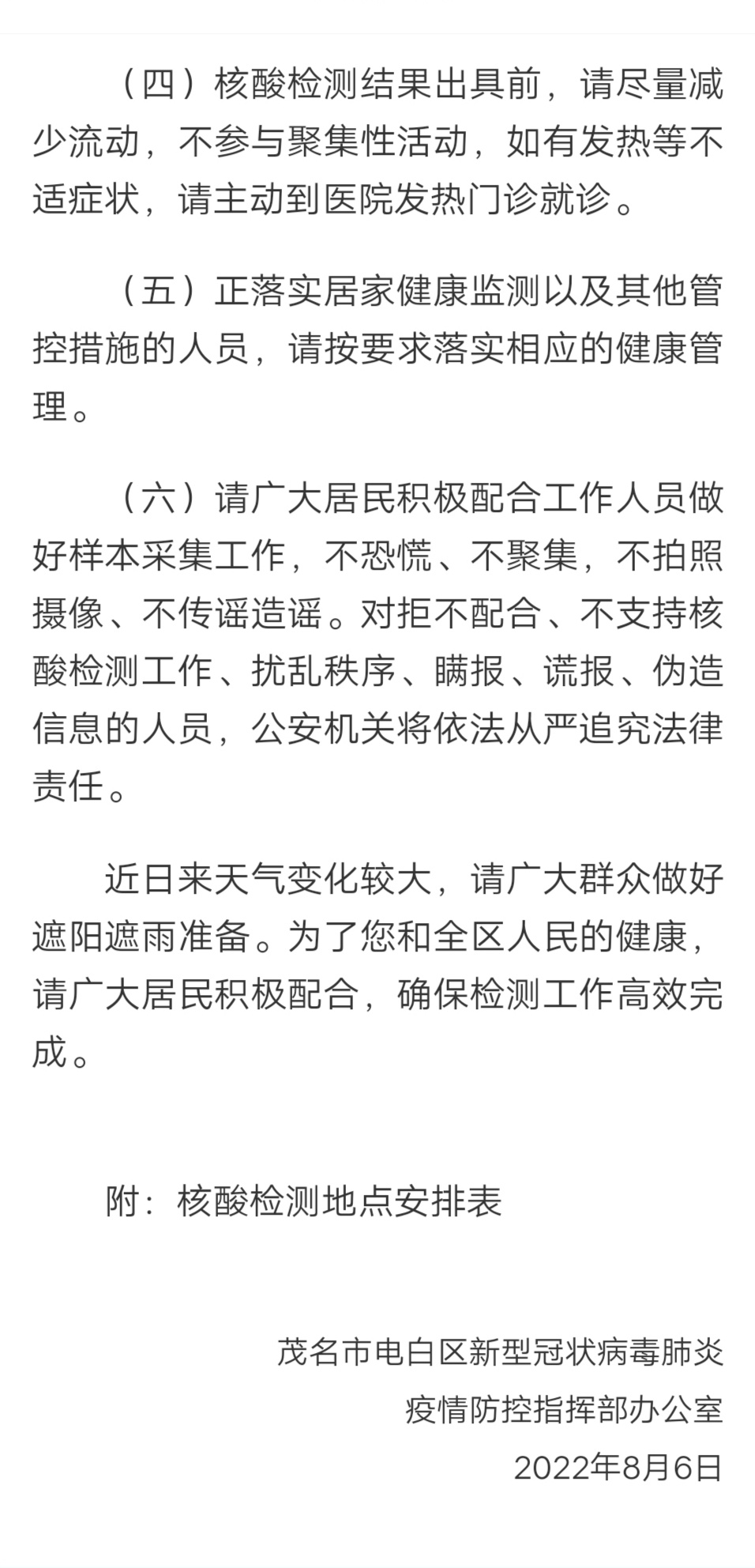 还有就是建议每个点都要告知,如遇特特殊情况或不在家或没留意手机信息等等的群众,如晚上9点过后再赶过来做核酸的,告知他她们去区人民医院核酸点检测,还有建议区镇街村居提前窜街窜巷窜户窜屋或持扩音器等等,广而告知,尽量做到应检尽检