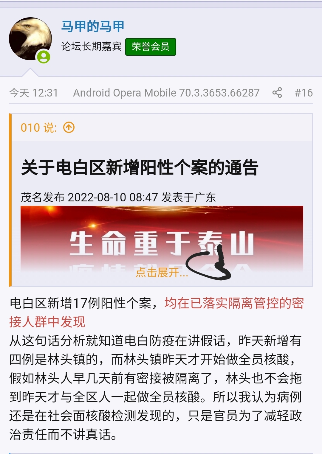讨论 “电白区疾控中心主任:第五轮大规模核酸检测结果均为阴性,疫情发展态势平稳可控”这则非常规“新闻”的分析