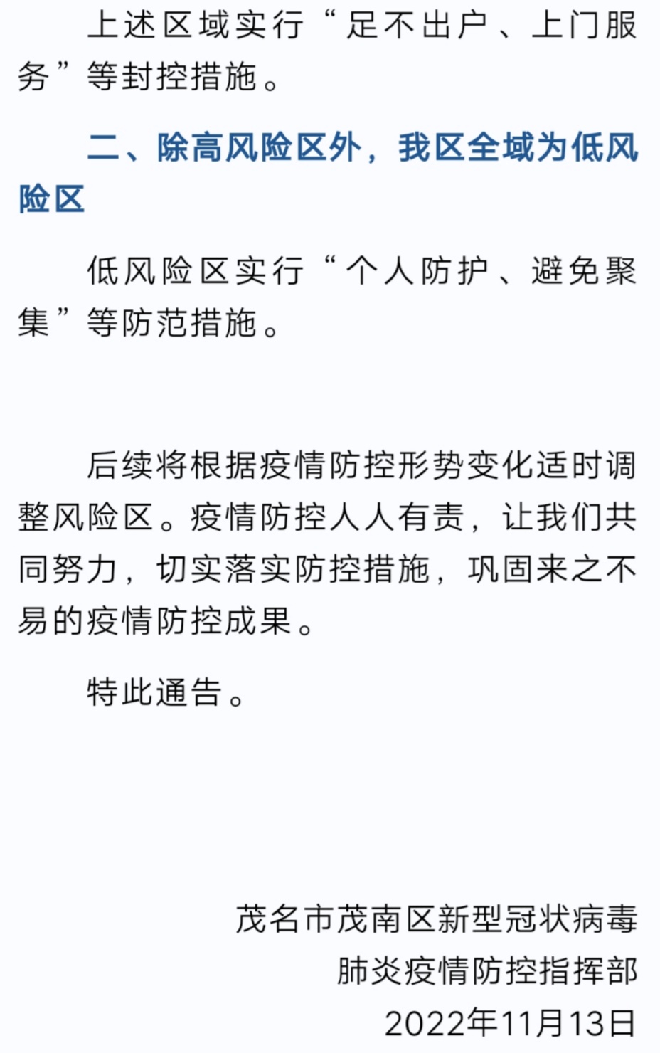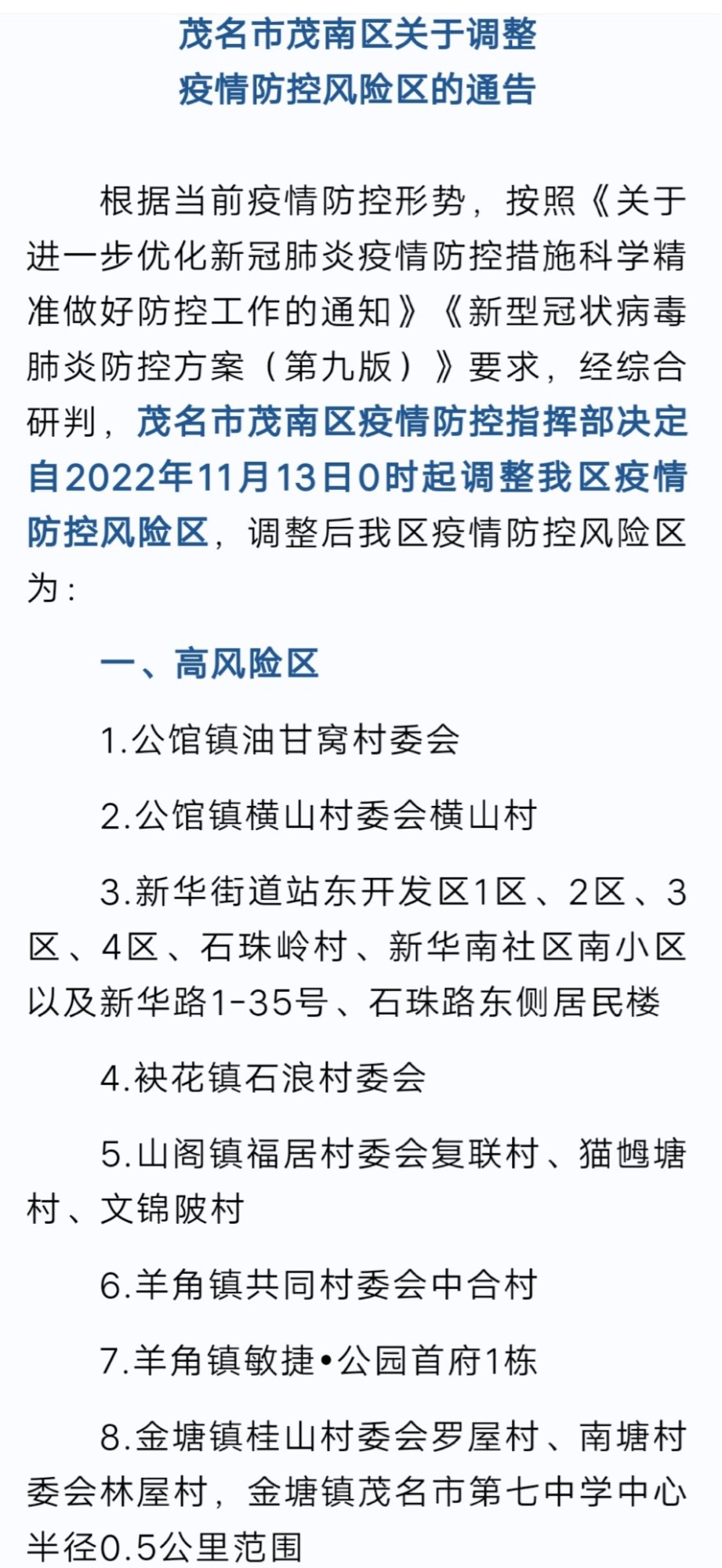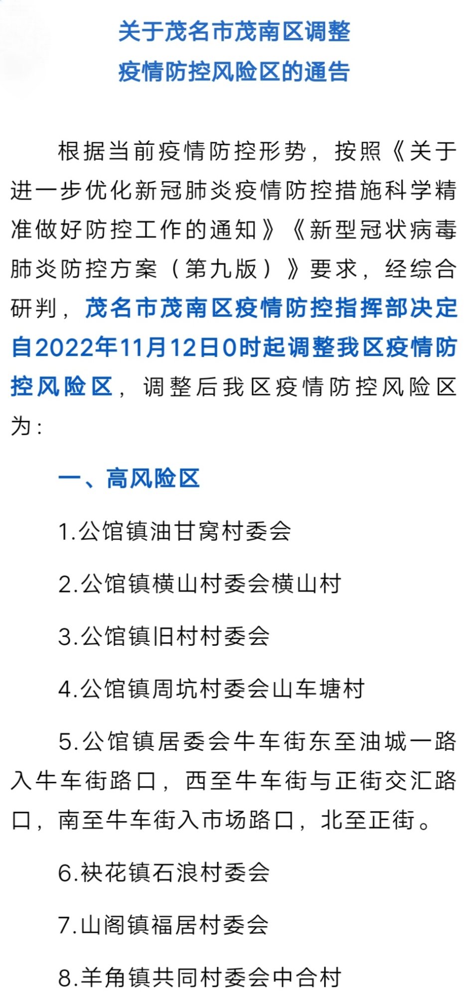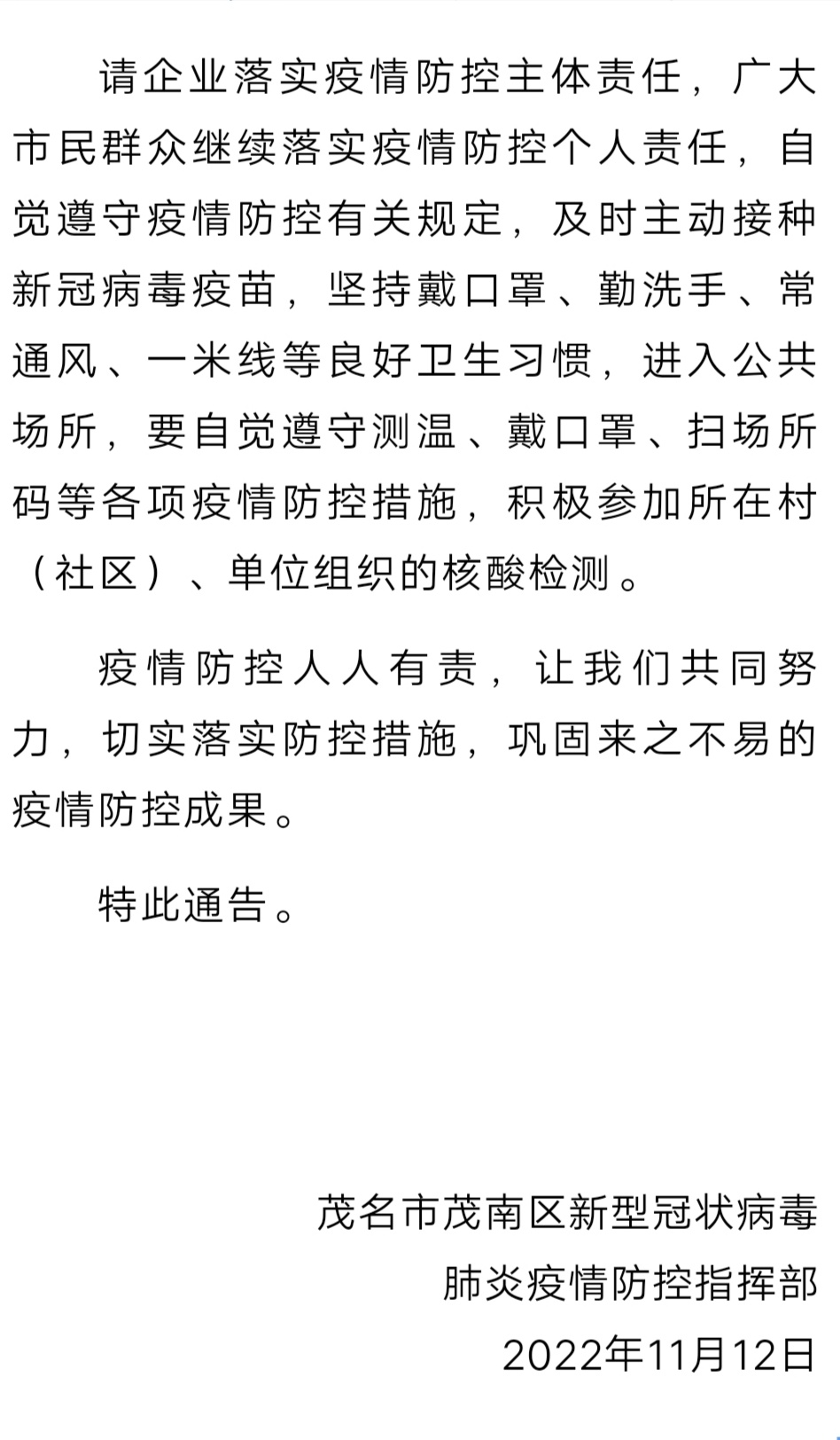 茂名市电白区新型冠状病毒肺炎疫情防控指挥部2022年11月12日