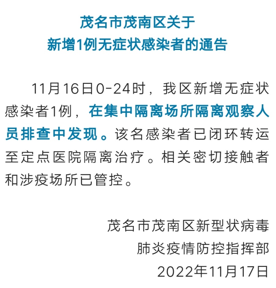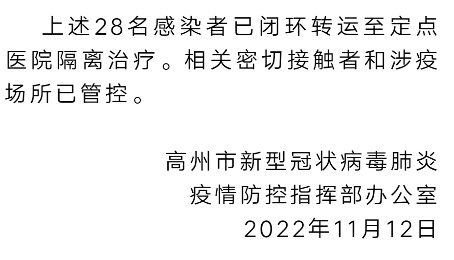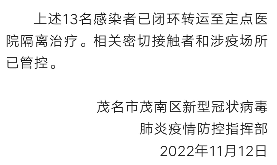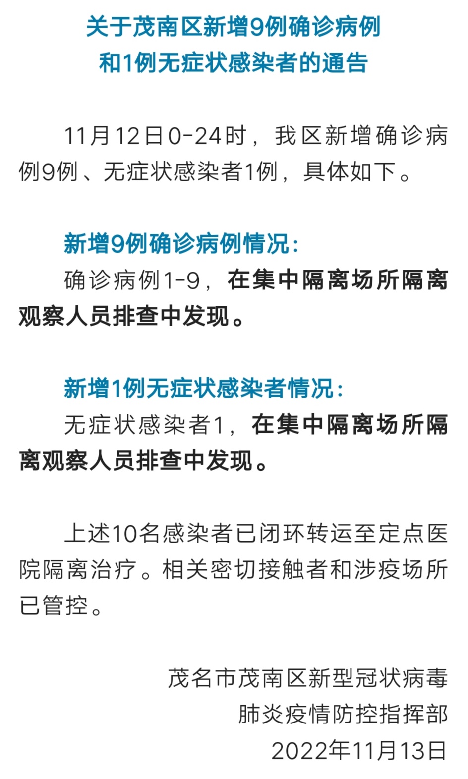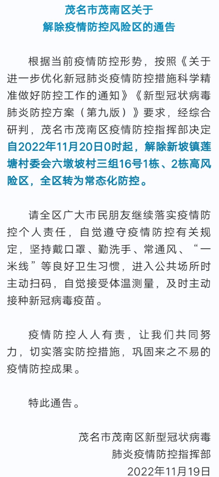 茂名市电白区新型冠状病毒肺炎疫情防控指挥部2022年11月12日