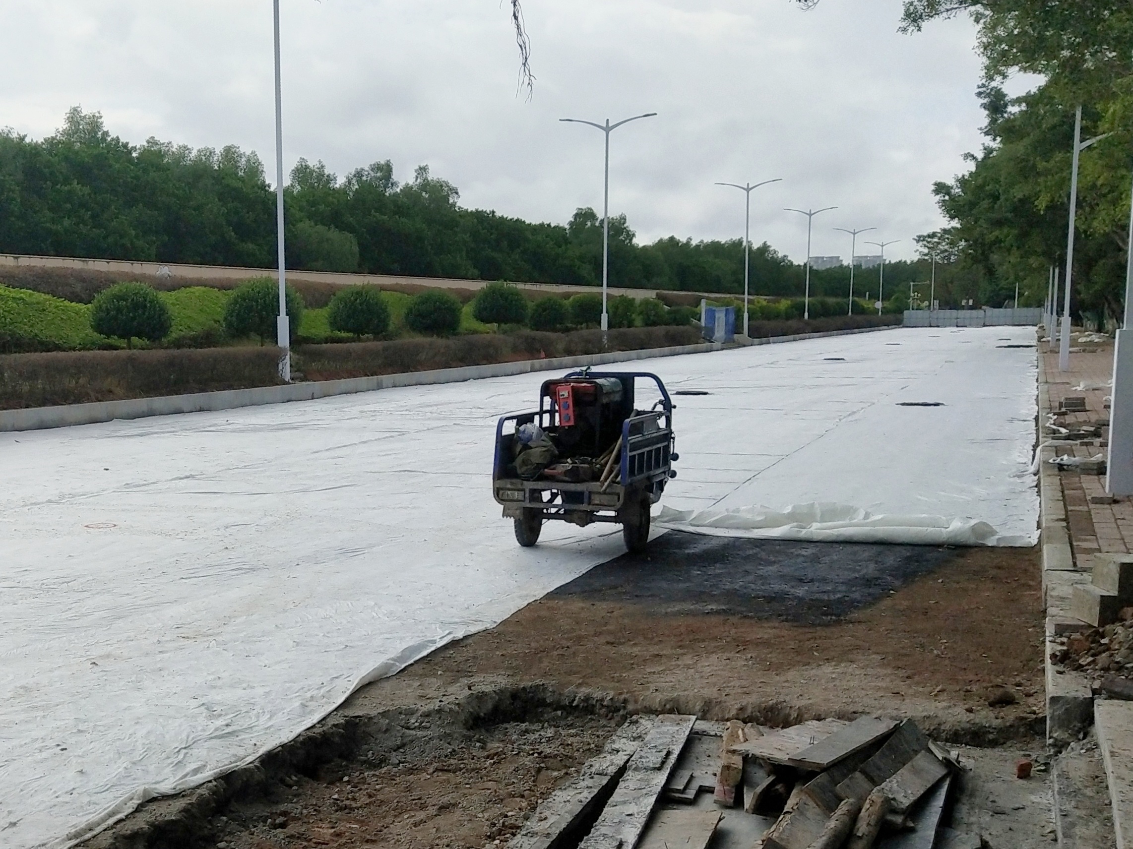 交流 海滨一至忠良街段清表,像似铺设沥青布垫?