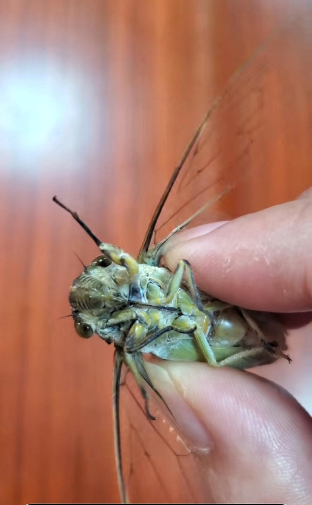 抓到一头误撞入宅的怪物。 此物八只长脚,锐圆柱形,身披双桨,眼睛爆突,头至胸一条黑色针状物,貌似信号接收器。 会飞,时而直上,时而盘璇。 地球上根本不存在的东西,大概率为外星物种。 甚至就是外星人。 因为稍加挤压,它便会发出"嵫嵫"的刺耳求救声响。 避免美国抢走先机,盼望国家科研机构迅速派出专家前来核实。 若真为外星人类,请免费接走深入研究,不必给我颁发500块钱奖金 加一面锦旗。