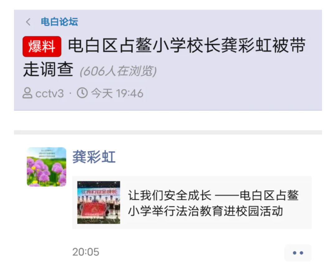 cctv3 小学三年级 注册 2018-05-18 消息 201 反馈评分 111 点数 41 2023-06-14 iOS Mobile Safari #22 孔子老婆 说: 楼主消息有误! 楼主19:46发发帖,龚校20:05发朋友圈。 点击展开... 她手机在她丈夫手里拿着