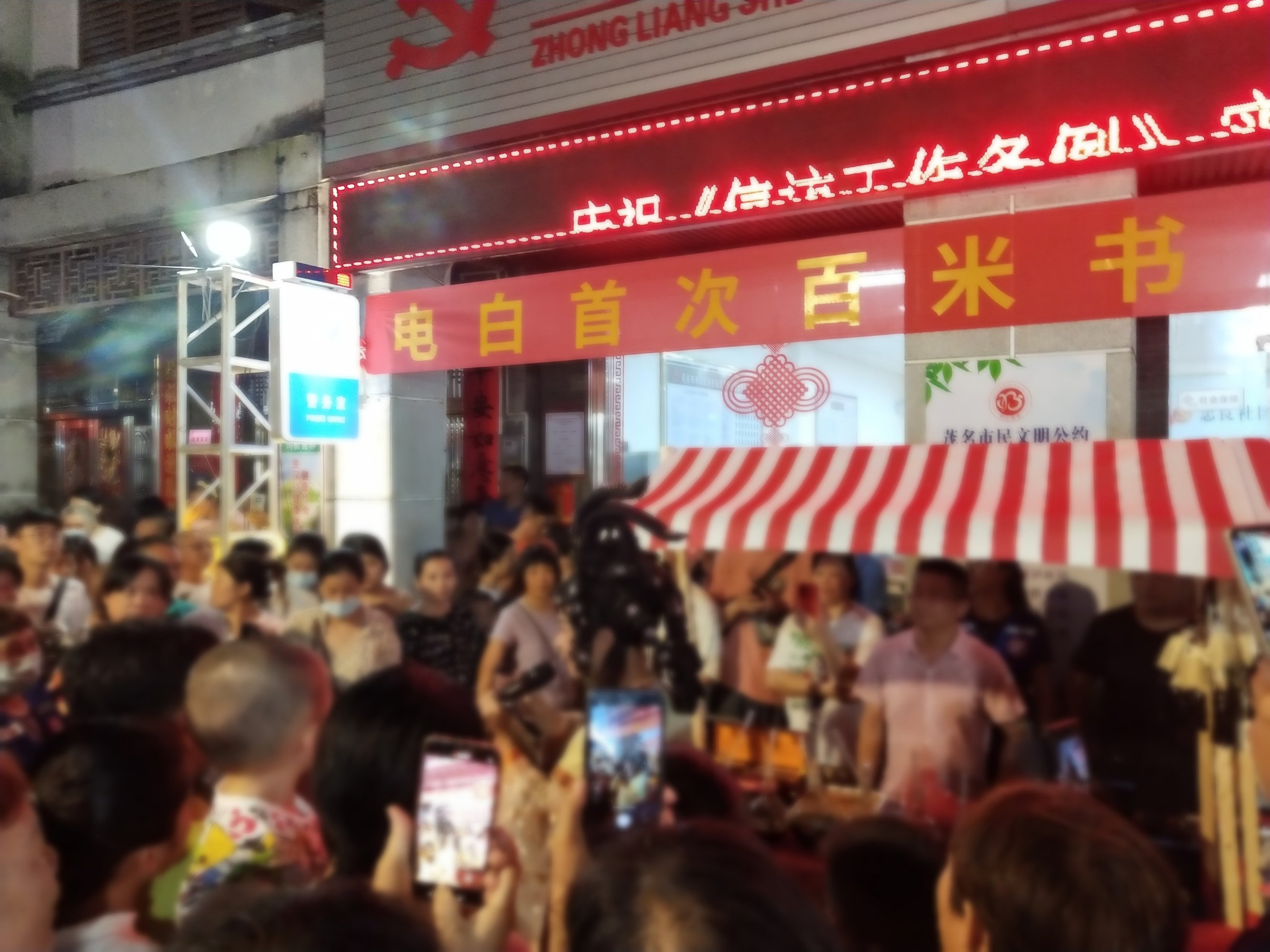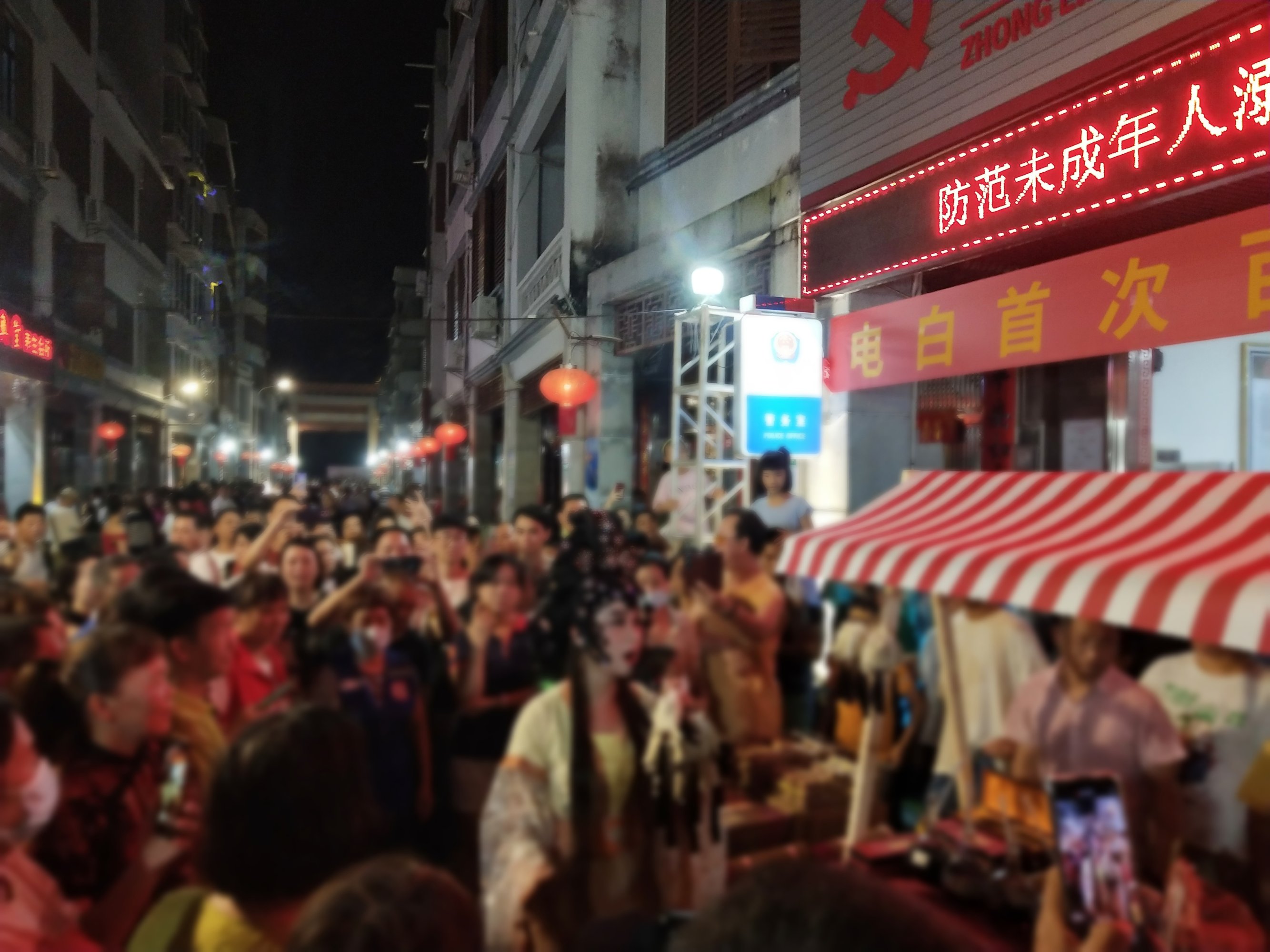 早前的,虽那百米书法长卷没开始,但整条忠良沉香街人来人往,舞狮的,穿着各种各样古代装饰的人群...人文人气车影人影也是一道风景线..