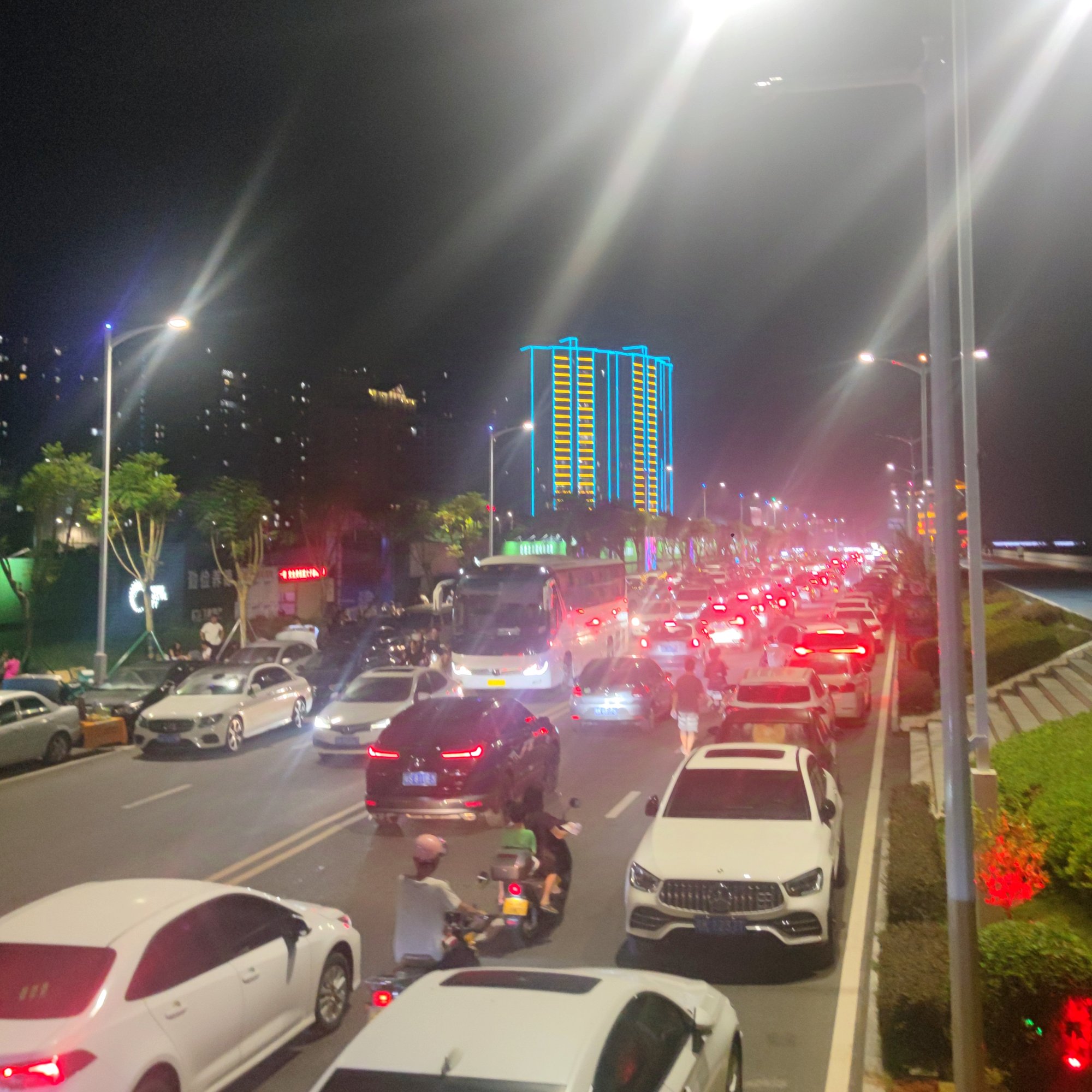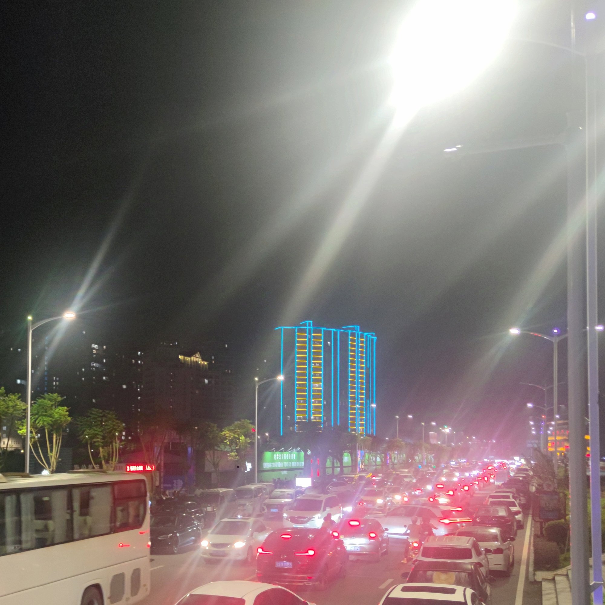 诂计又都是半夜深更通宵达旦,下图景是大概十一点几近十二时,这时也接近某楼盘外墙灯光与观鹭阁灯光等要关闭的时间段,或者也只有这时才可放飞自我~~而这时也见有一辆大游巴的经过~~人来人往~车来车往~好生热闹~ 您的浏览器无法显示此视频。