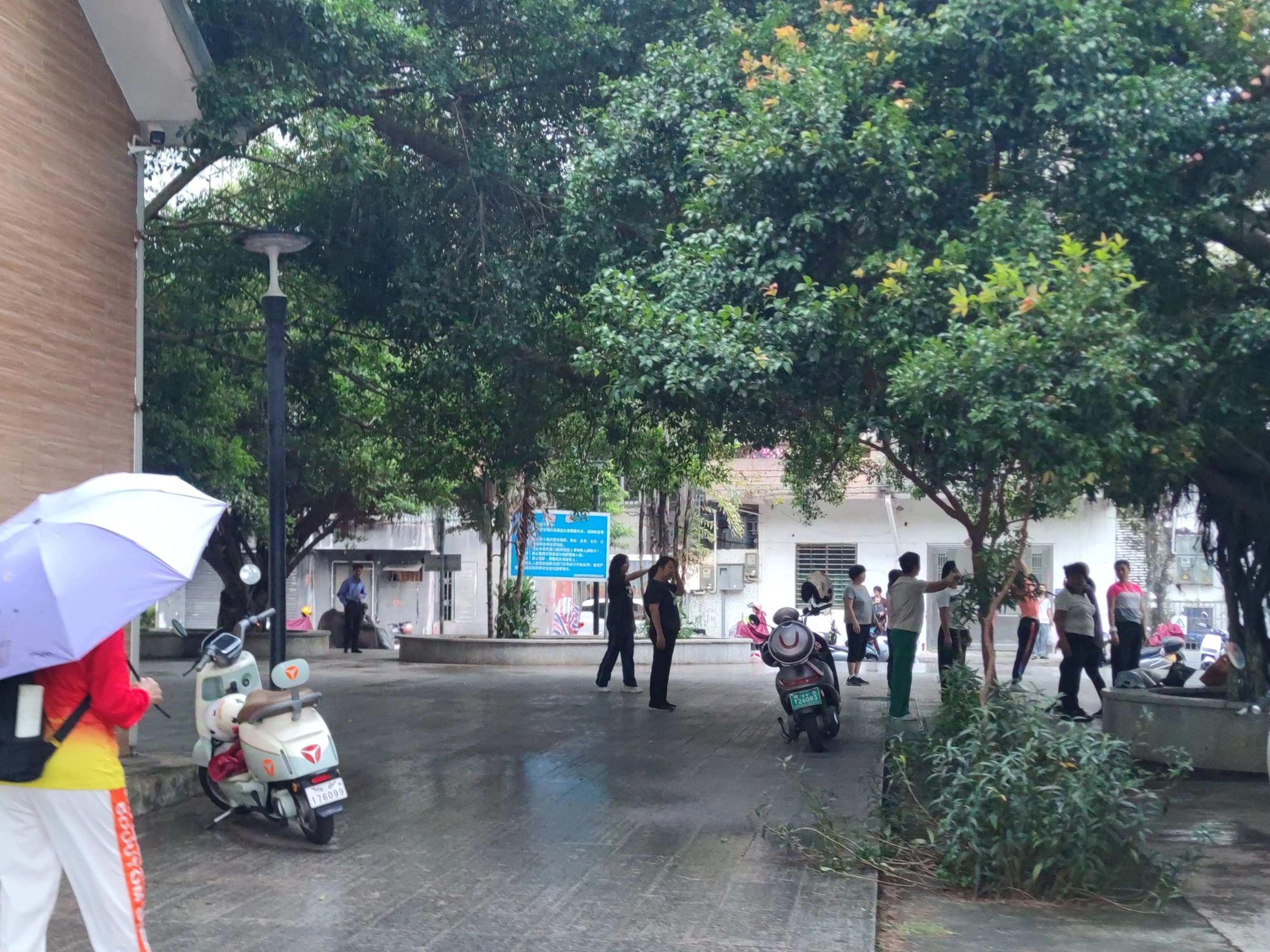 而东湖那广场上有些晨舞者,依然在大树遍雨下,依然起舞着~