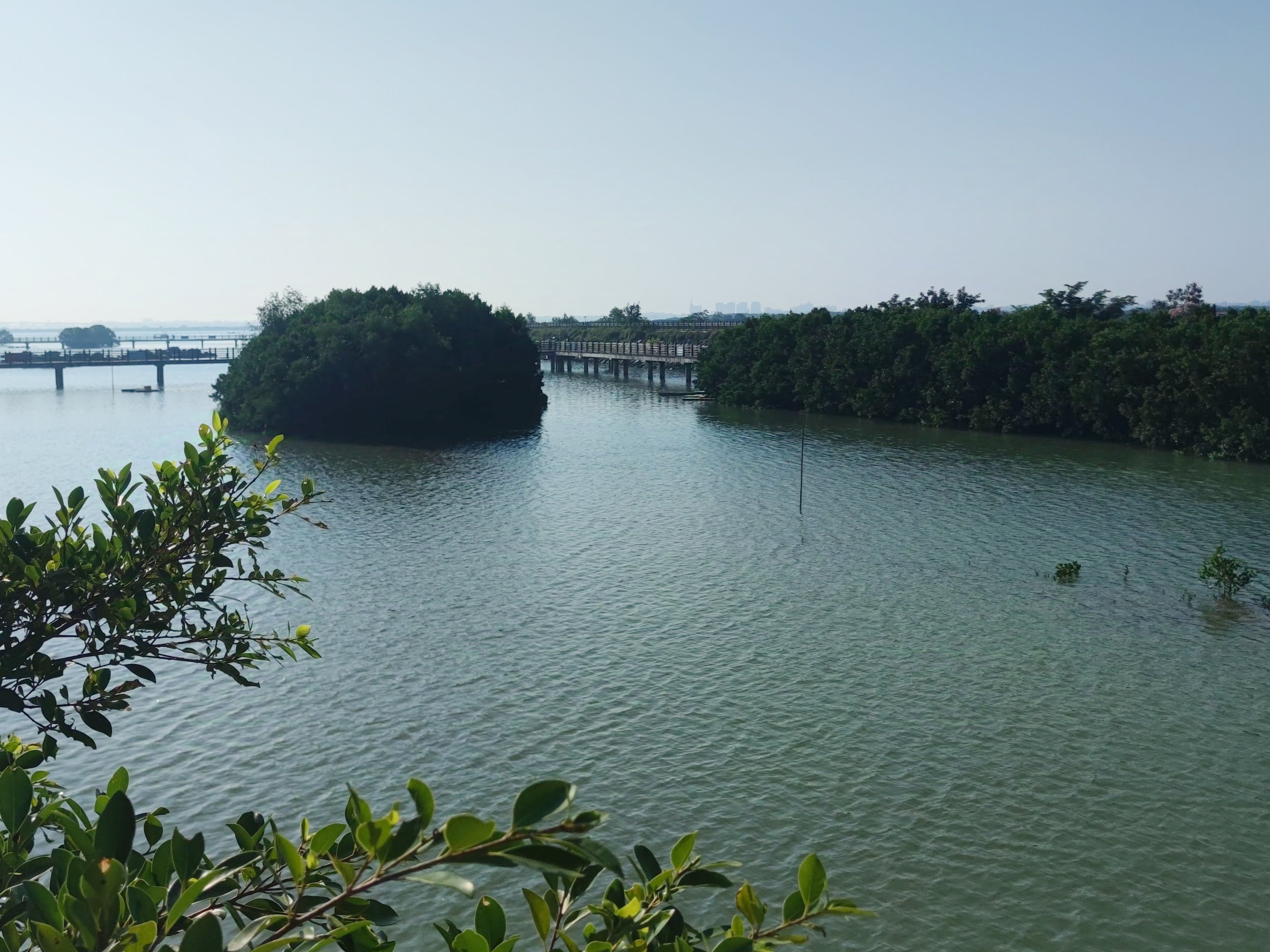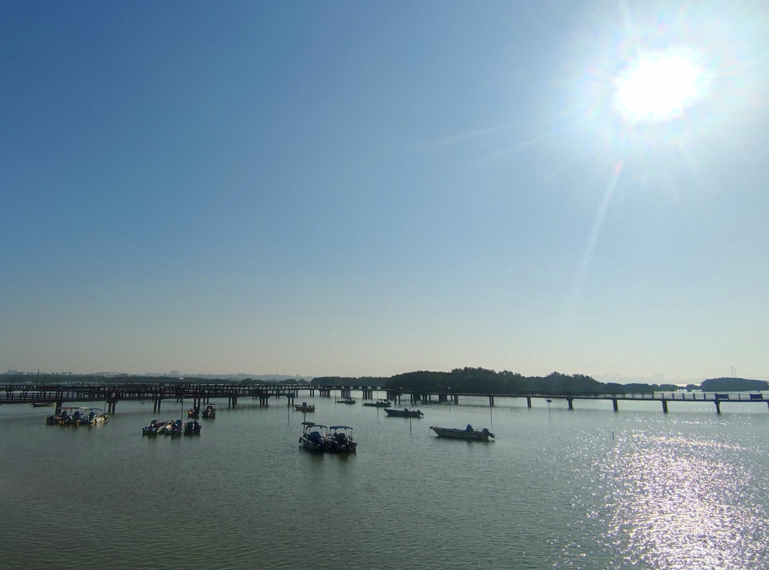 这些天,好像海水的水位都比较高~而那些红树林上有好些白鹭等鸟儿在栖息,有反光所以拍的不好不清晰~