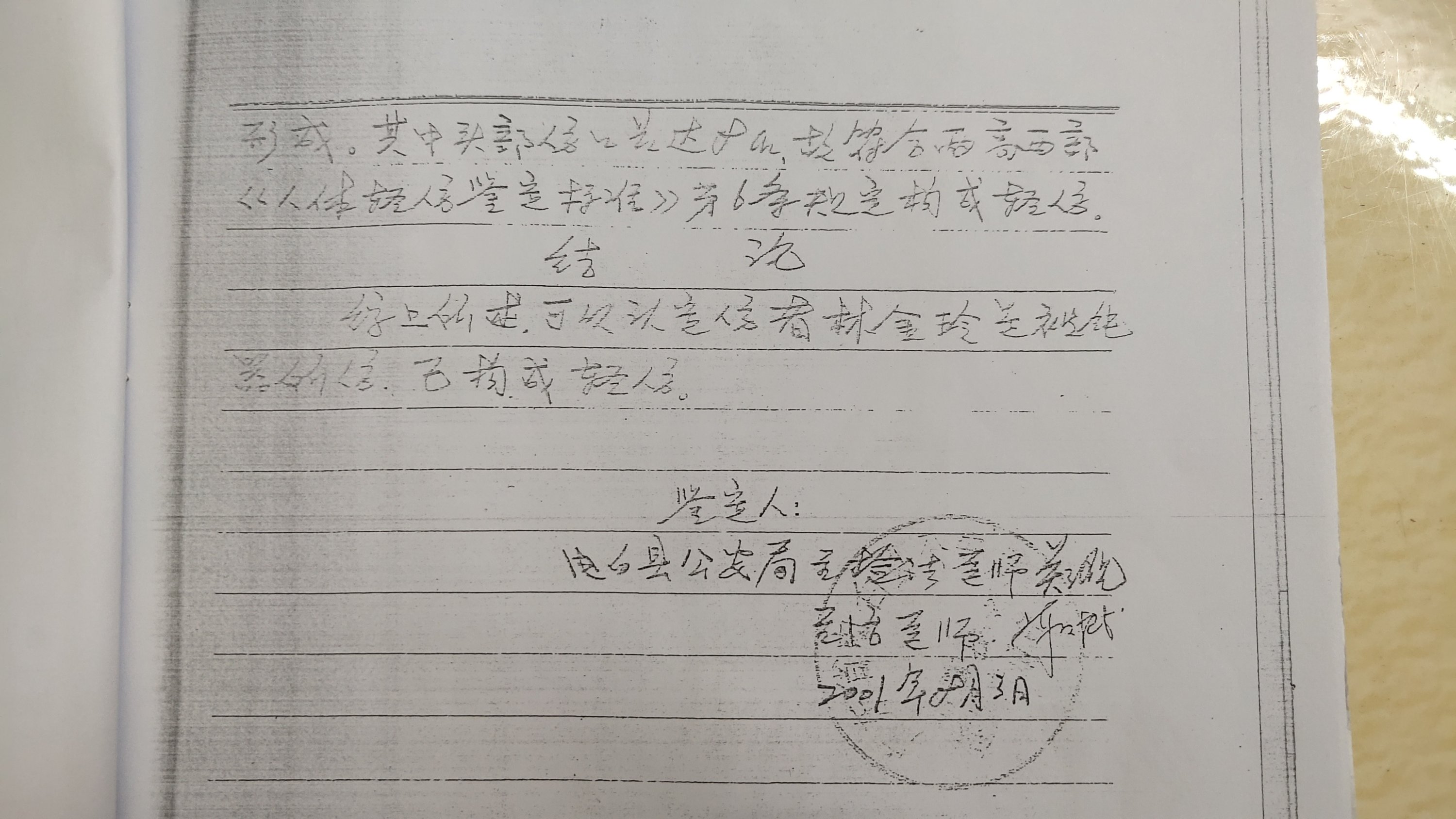 一、2001年7月30日,派出所已出具《报警回执》。2001年8月3日和8日,公安局法医鉴定二者为“轻伤”,为何一直不予立案侦查?请时任所长郑鑫解释,为什么?