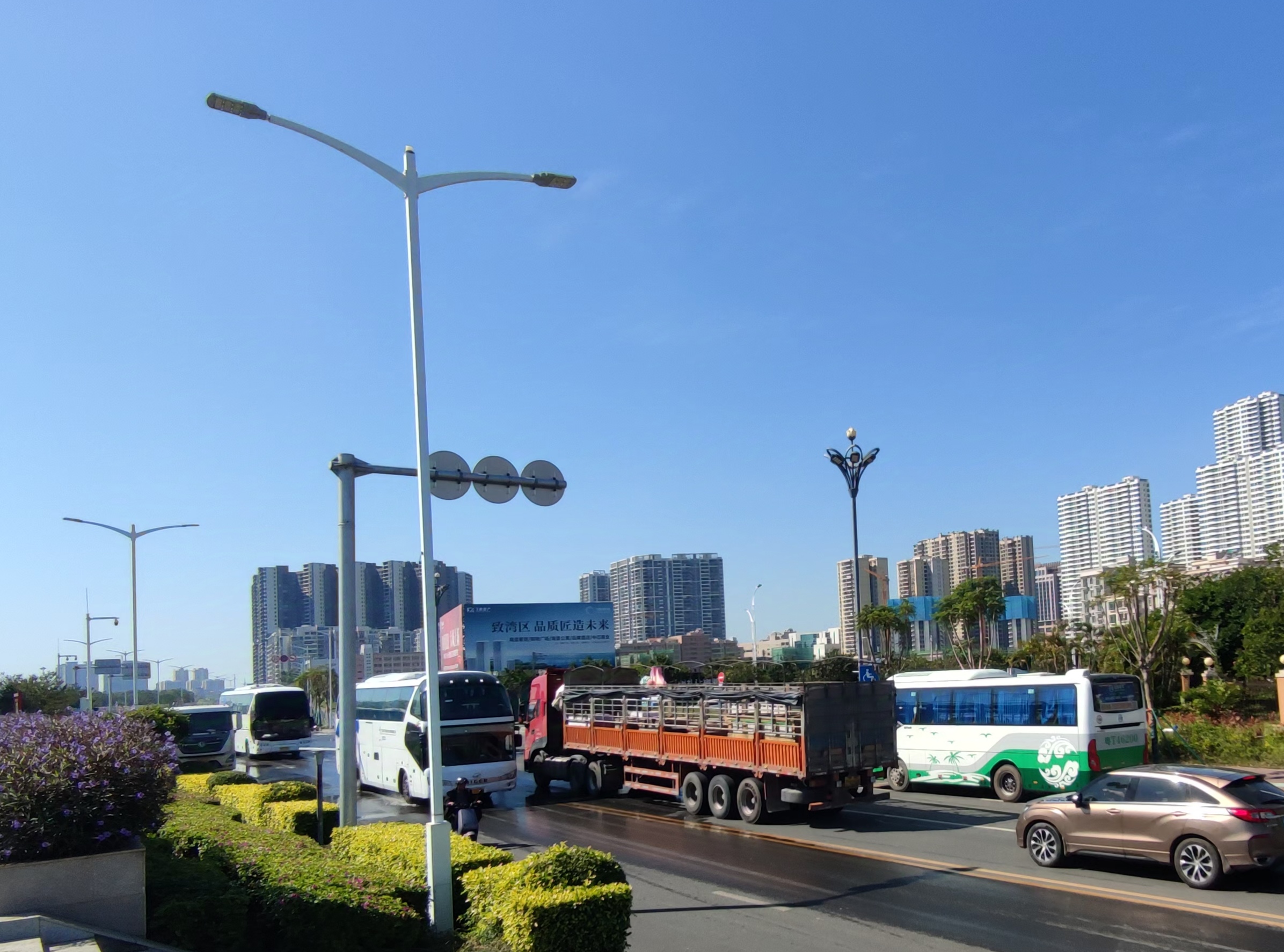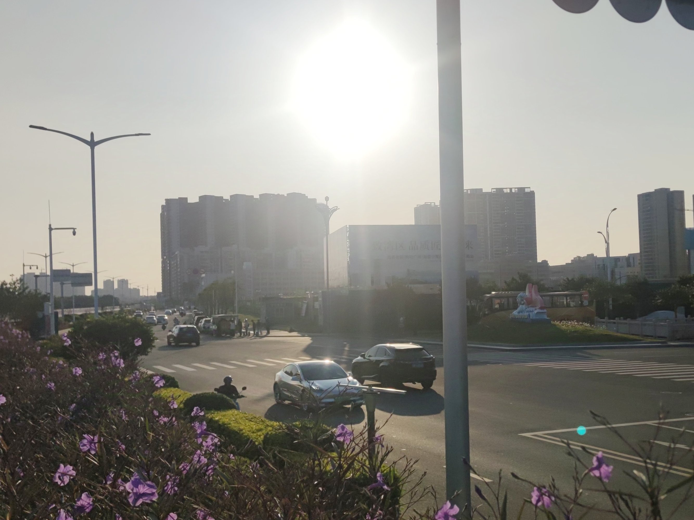 不知辽A那边的气候如何,而这边早睌虽有点冷,但中下午阳光照射下有点热~,而我想看下大游巴走向?尾随时,无奈于两轮电鸡追不上六个轮的大巴车,也就早寨头交通灯处,不知辆向哪去了~?