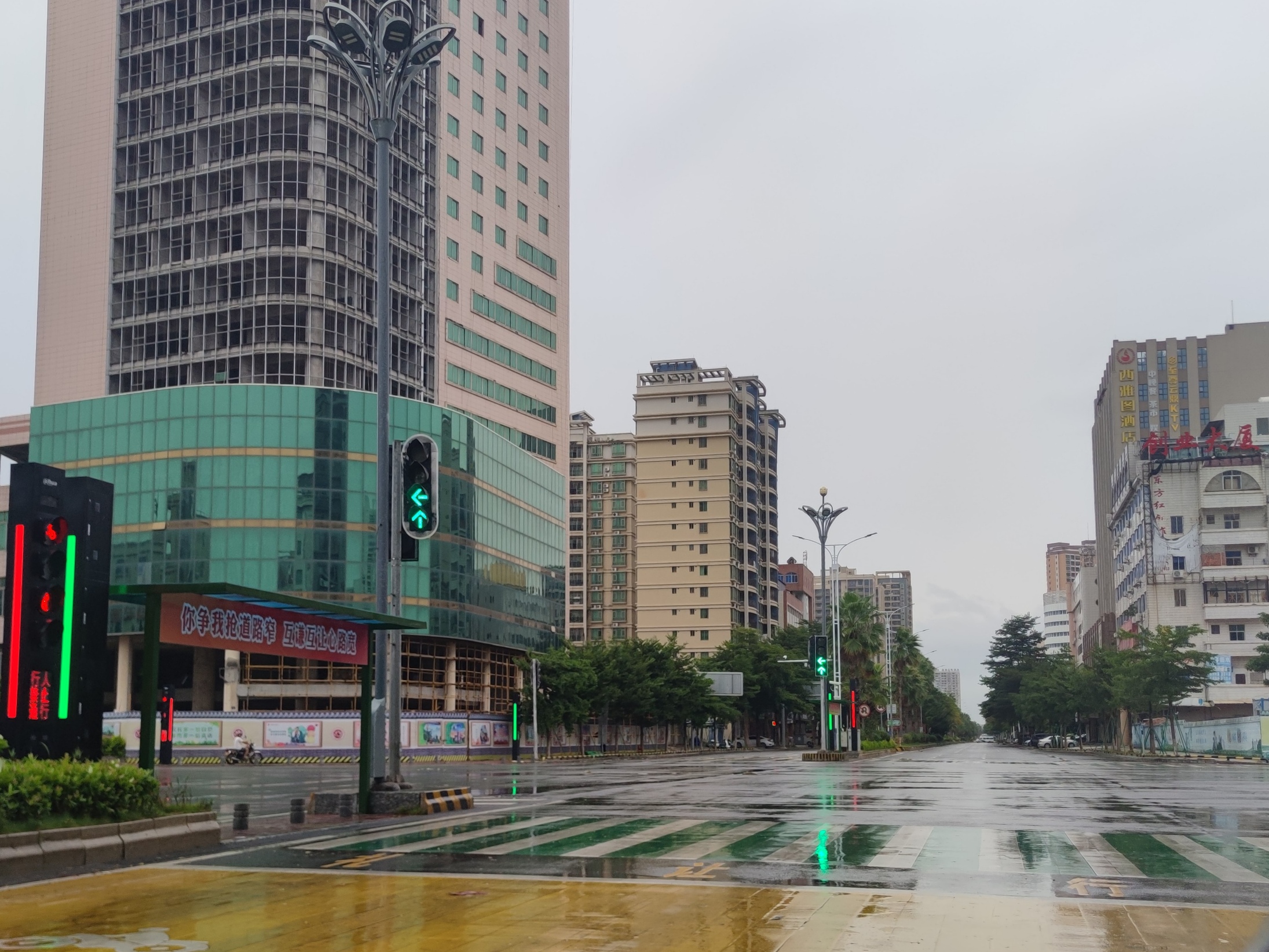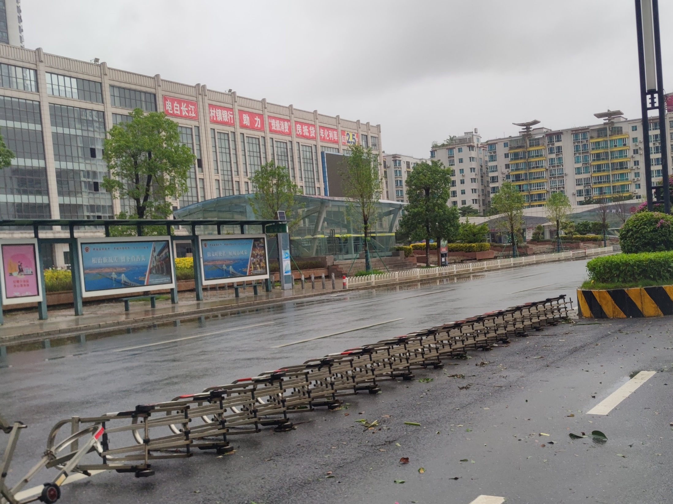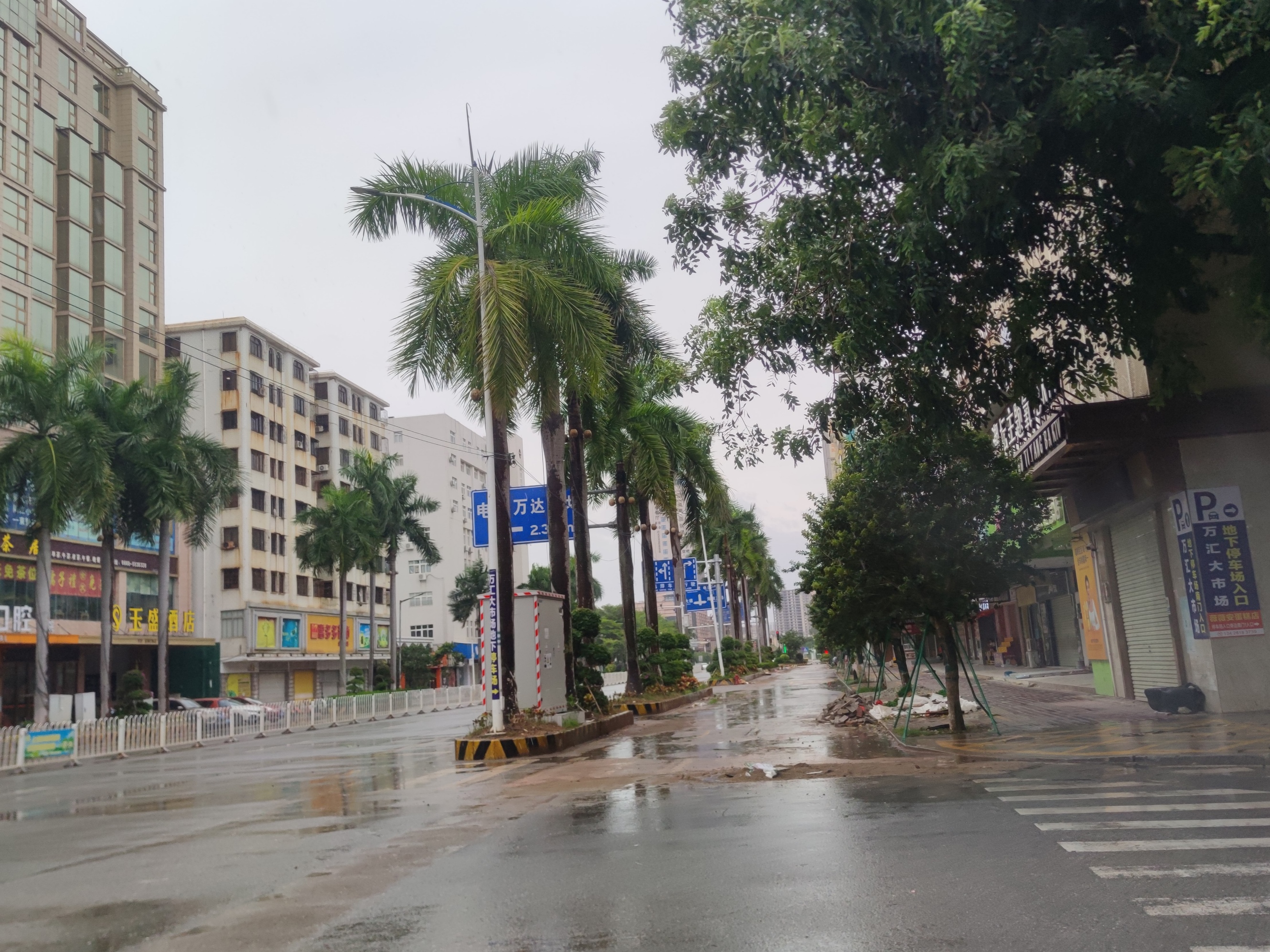 那迎宾路一带的商圈也早己停业防风了,而这一段也有多处临吋封了
