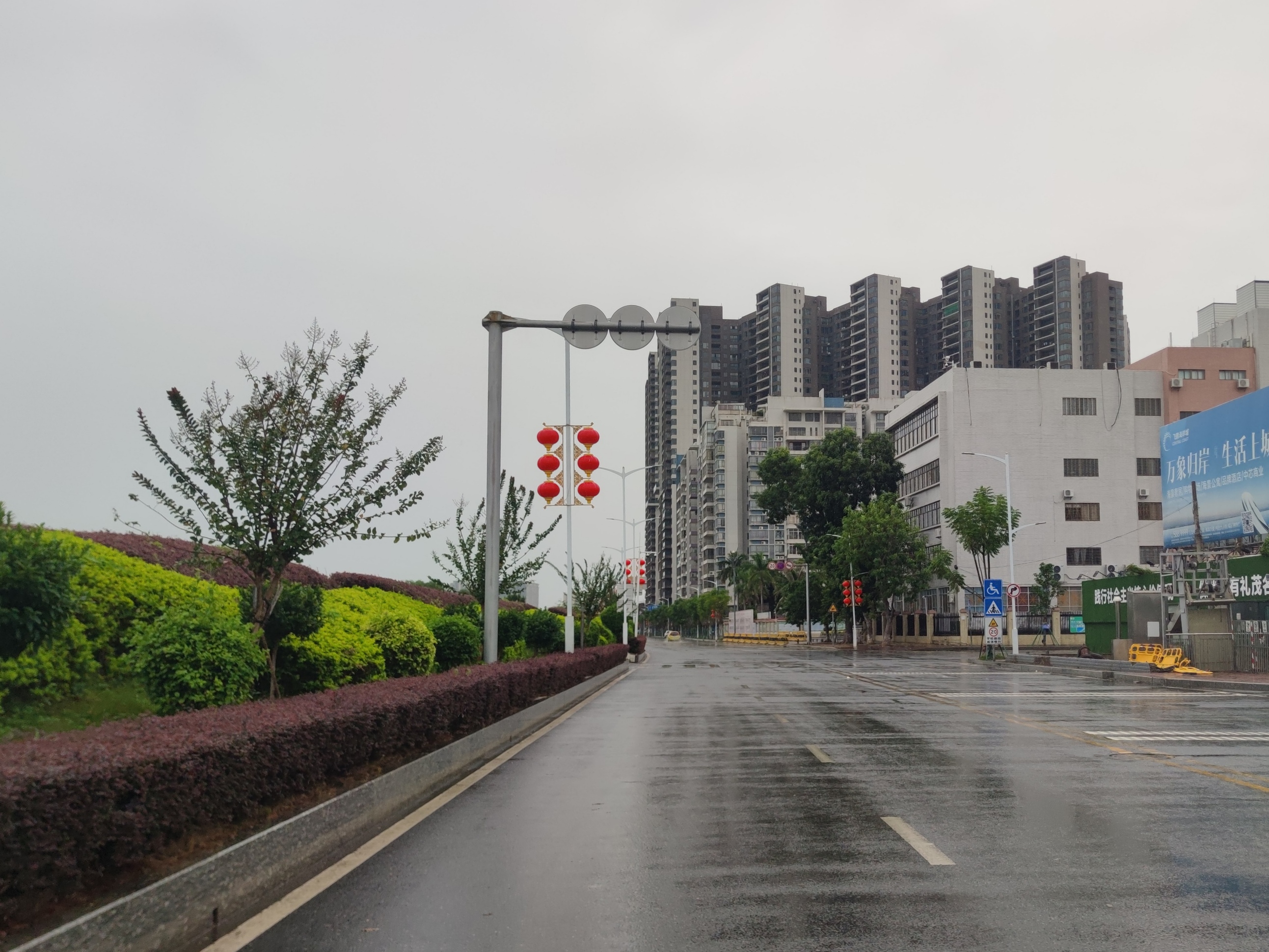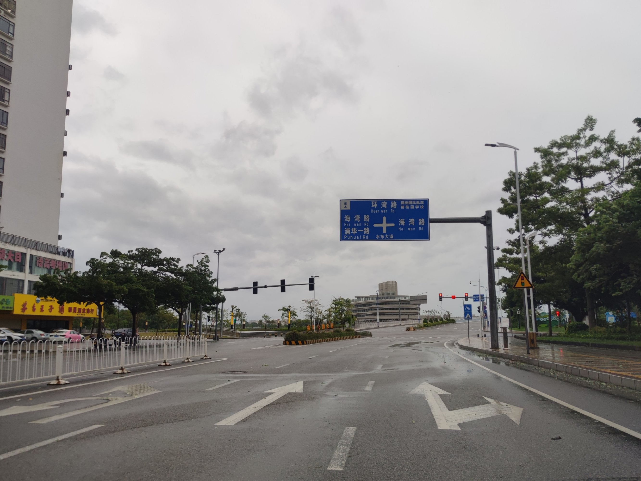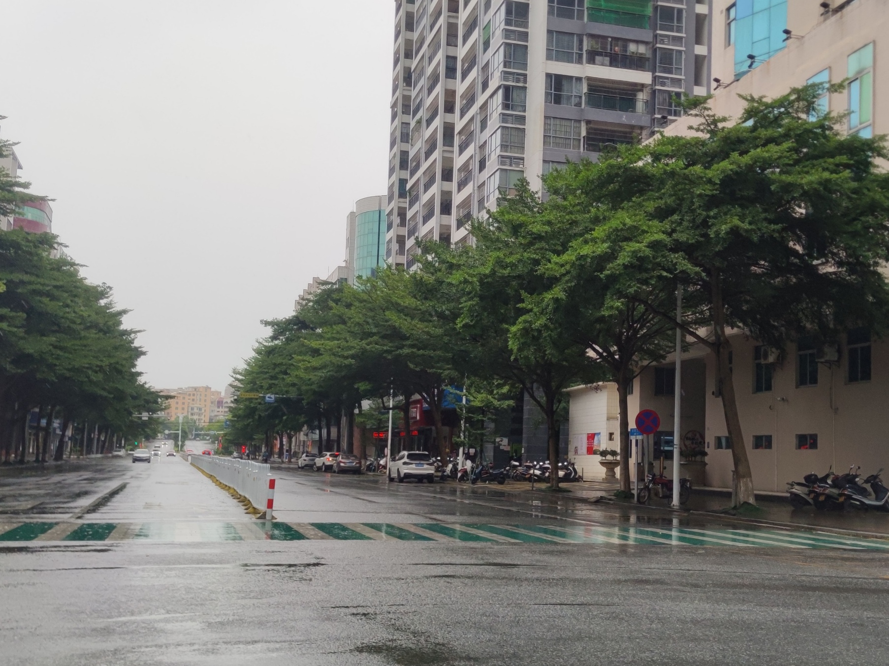 那迎宾路一带的商圈也早己停业防风了,而这一段也有多处临吋封了