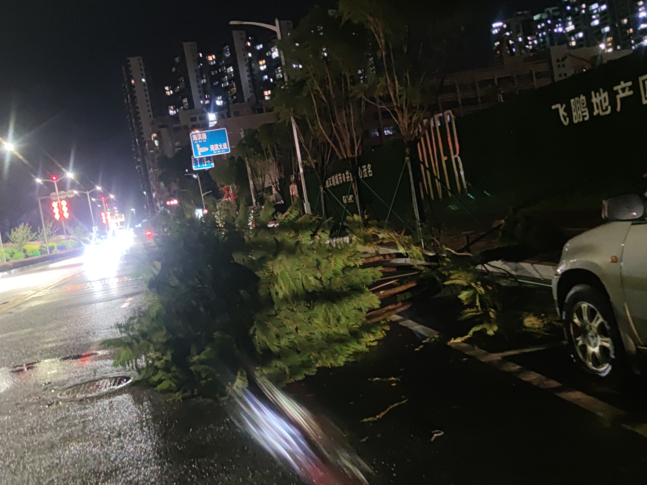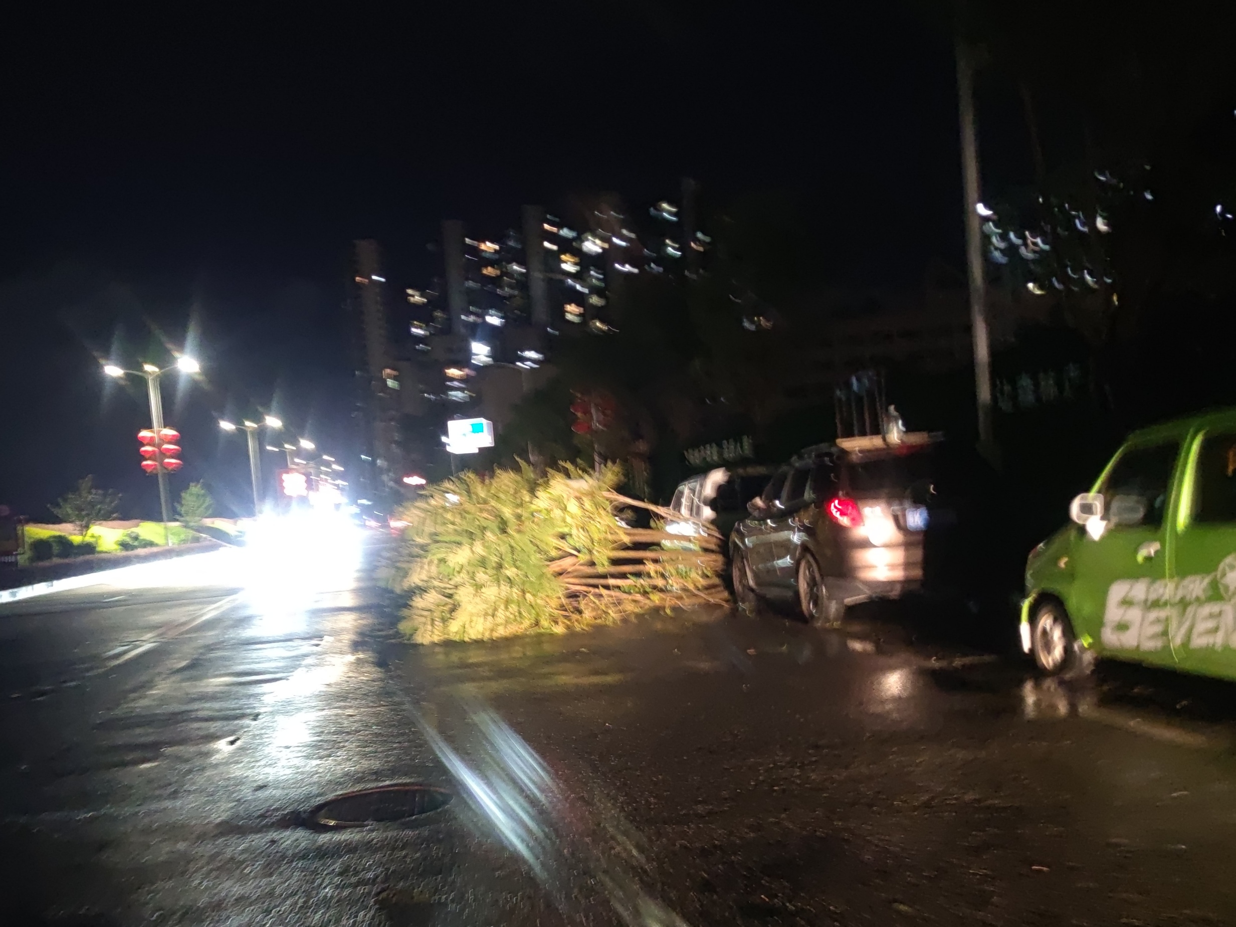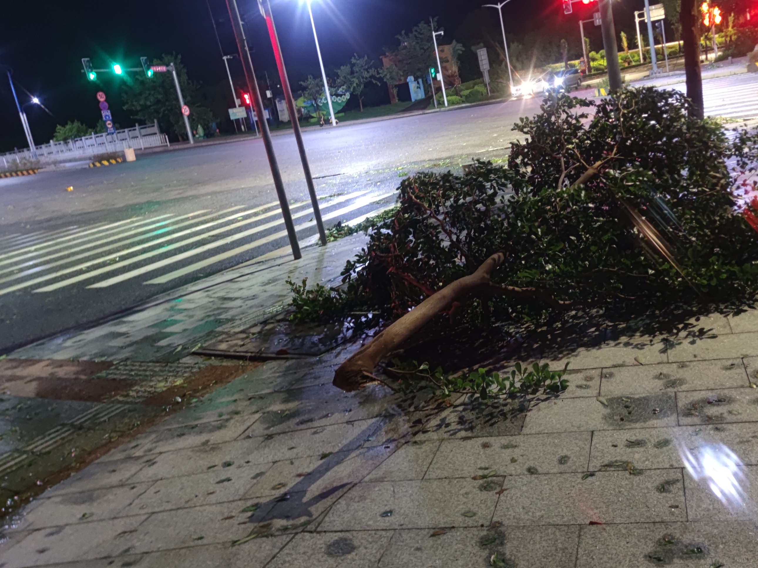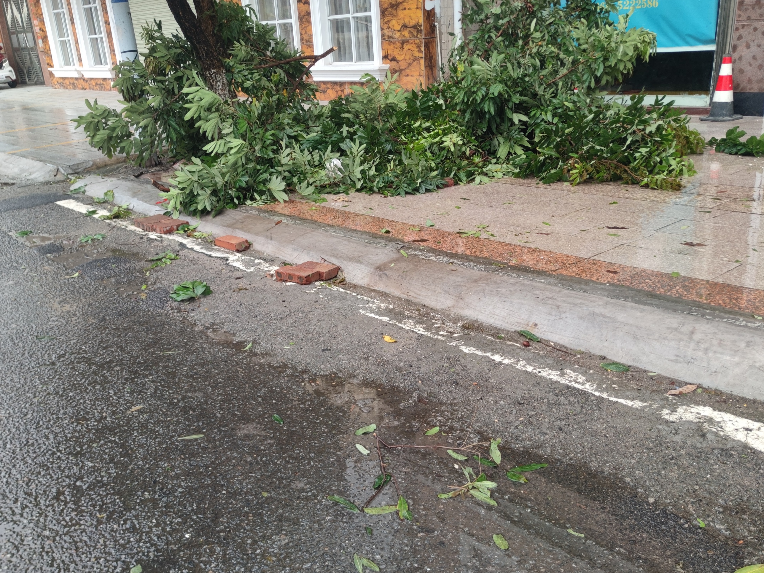 诂计可能都还有好多地方有树木吹倒断枝,摩托吹倒,广告招牌吹掉等现像,特别是近住些风囗的位置