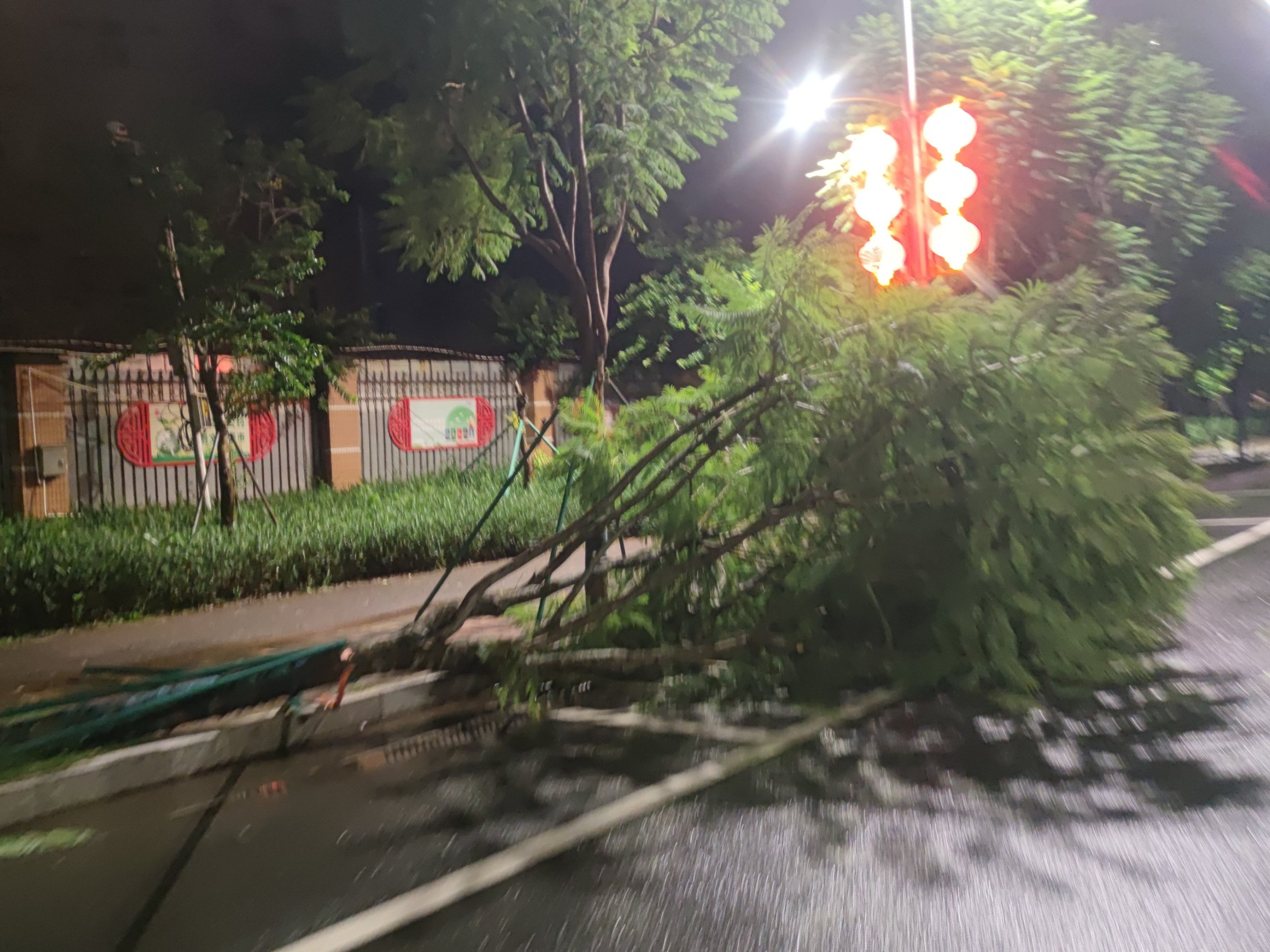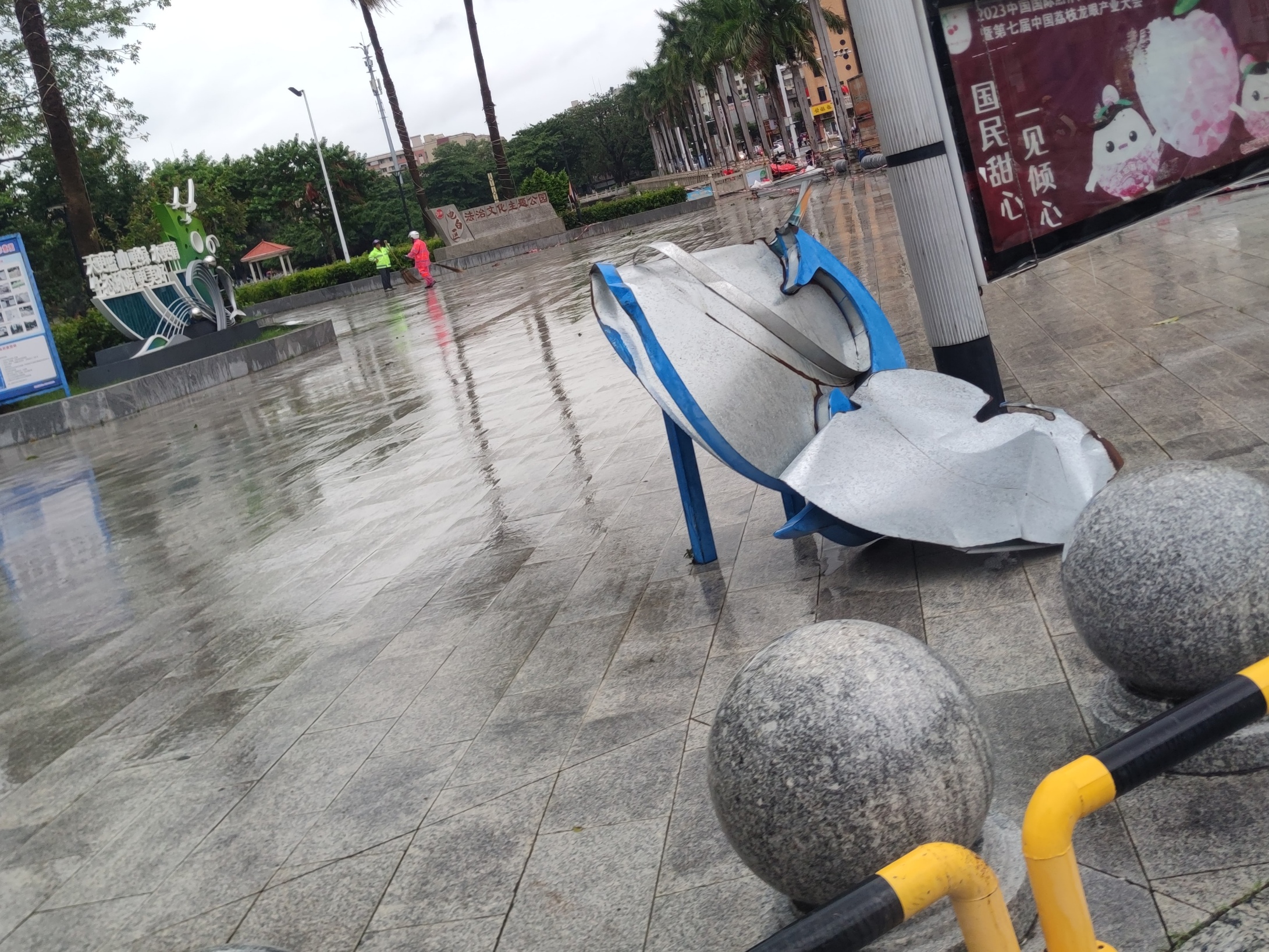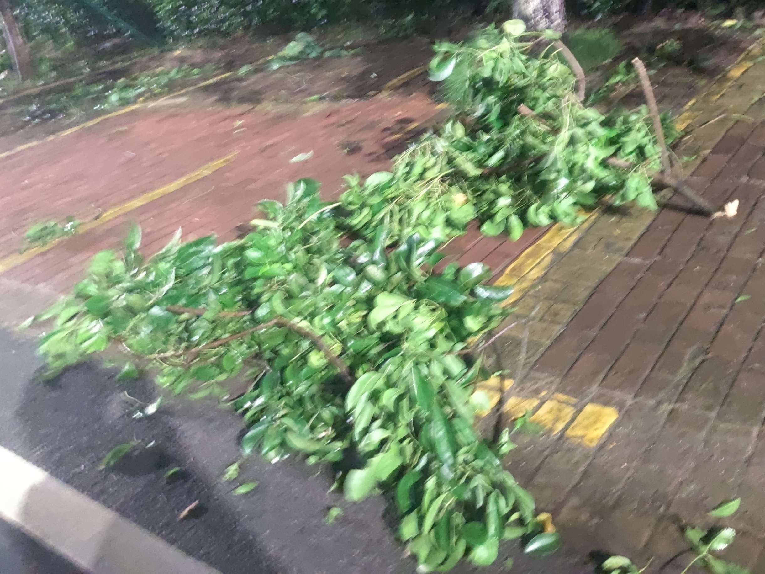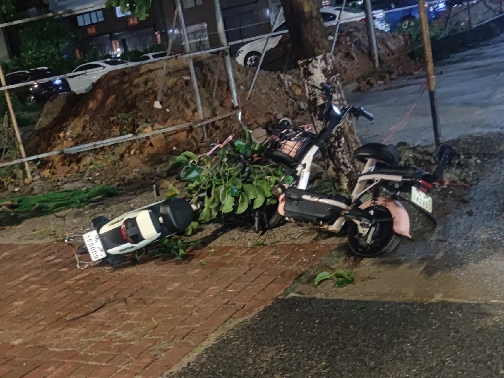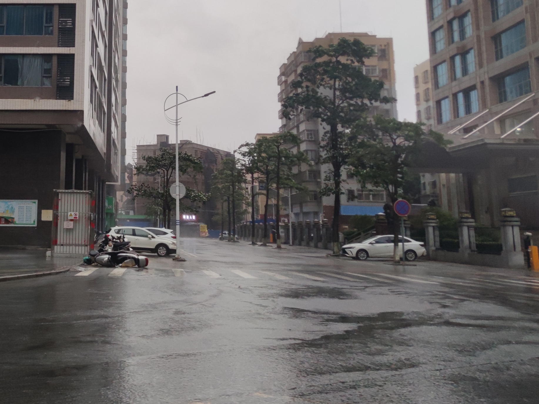 诂计可能都还有好多地方有树木吹倒断枝,摩托吹倒,广告招牌吹掉等现像,特别是近住些风囗的位置