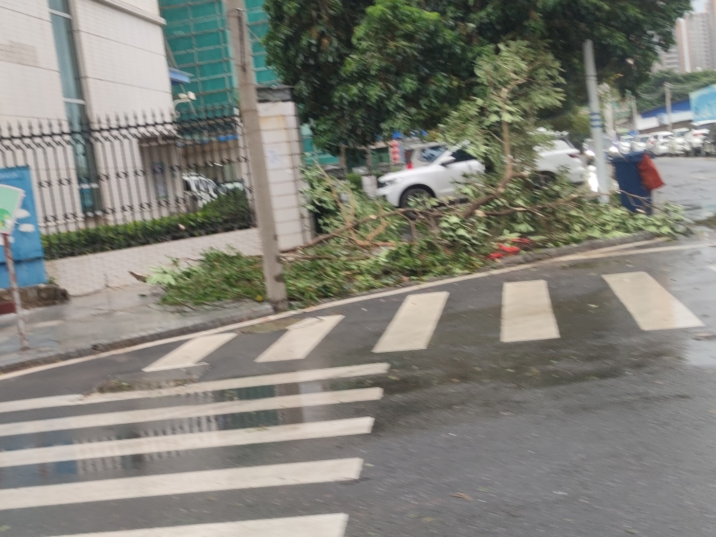 诂计那时的风也挺大的,好多树都给吹倒了,现在也有些大风,不过就暂时没雨了,听说电白些山区镇吹得更厉害?