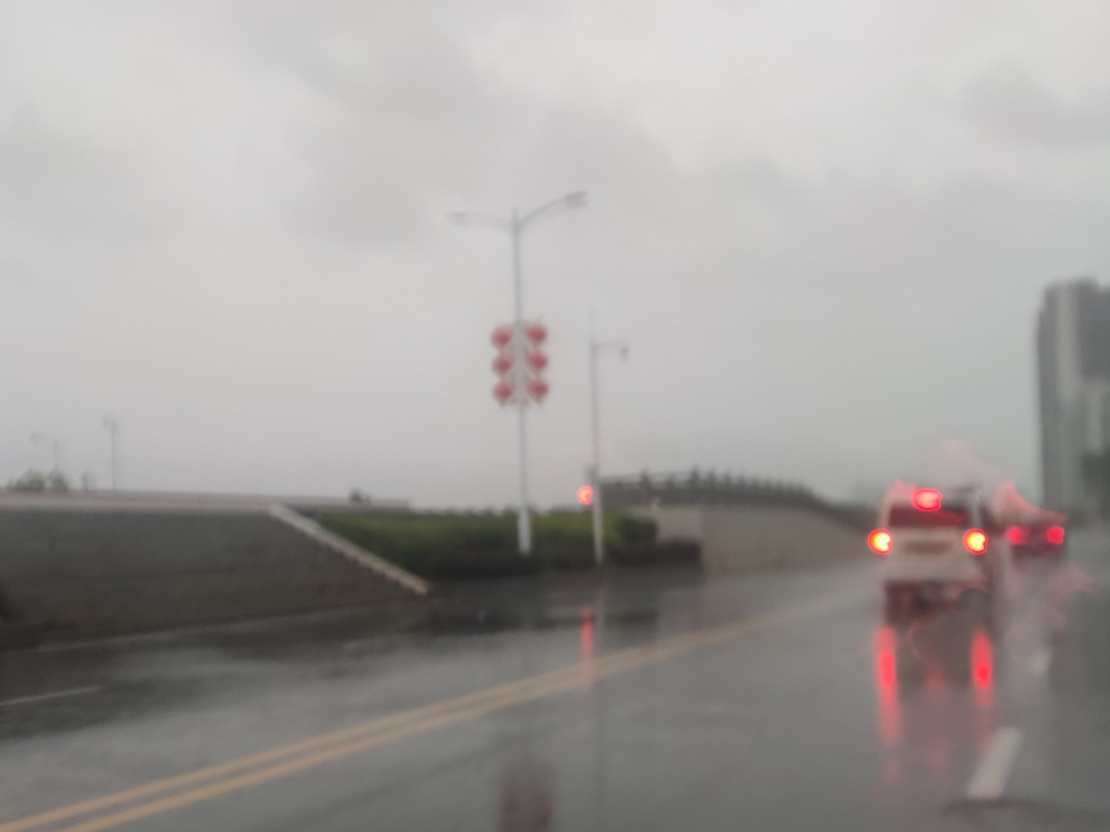 已经下起了好大雨并伴着风,拍的都朦朦胧胧了