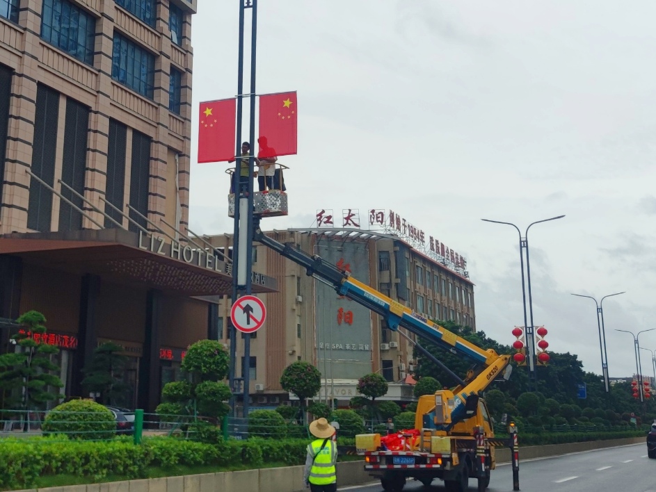 暂见在迎宾路,海滨路,见有施工车人员在现场