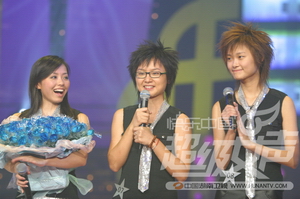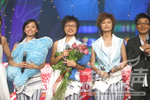 组图:“2005快乐中国蒙牛酸酸乳超级女声”年度三强总决选(1) (点击看大图) 8月26日晚,让全国电视观众为之感动和快乐了半年的“2005快乐中国蒙牛酸酸乳超级女声”落下了帷幕,08号李宇春获得冠军,07号周笔畅和01号张靓颖分获亚军和季军。 “2005超级女声”虽然已经结束,但是它带来的快乐还将一直延续下去。从8月27日起至9月28日,周末中午12:30,湖南卫视将特别安排“2005超级女声特辑”的完全呈现,不但有五强之外的选手的个性演唱特辑,还有五强海选和总决选的精彩片断。届时请锁定湖南卫视,感受“超级女声”带来的快乐梦想!