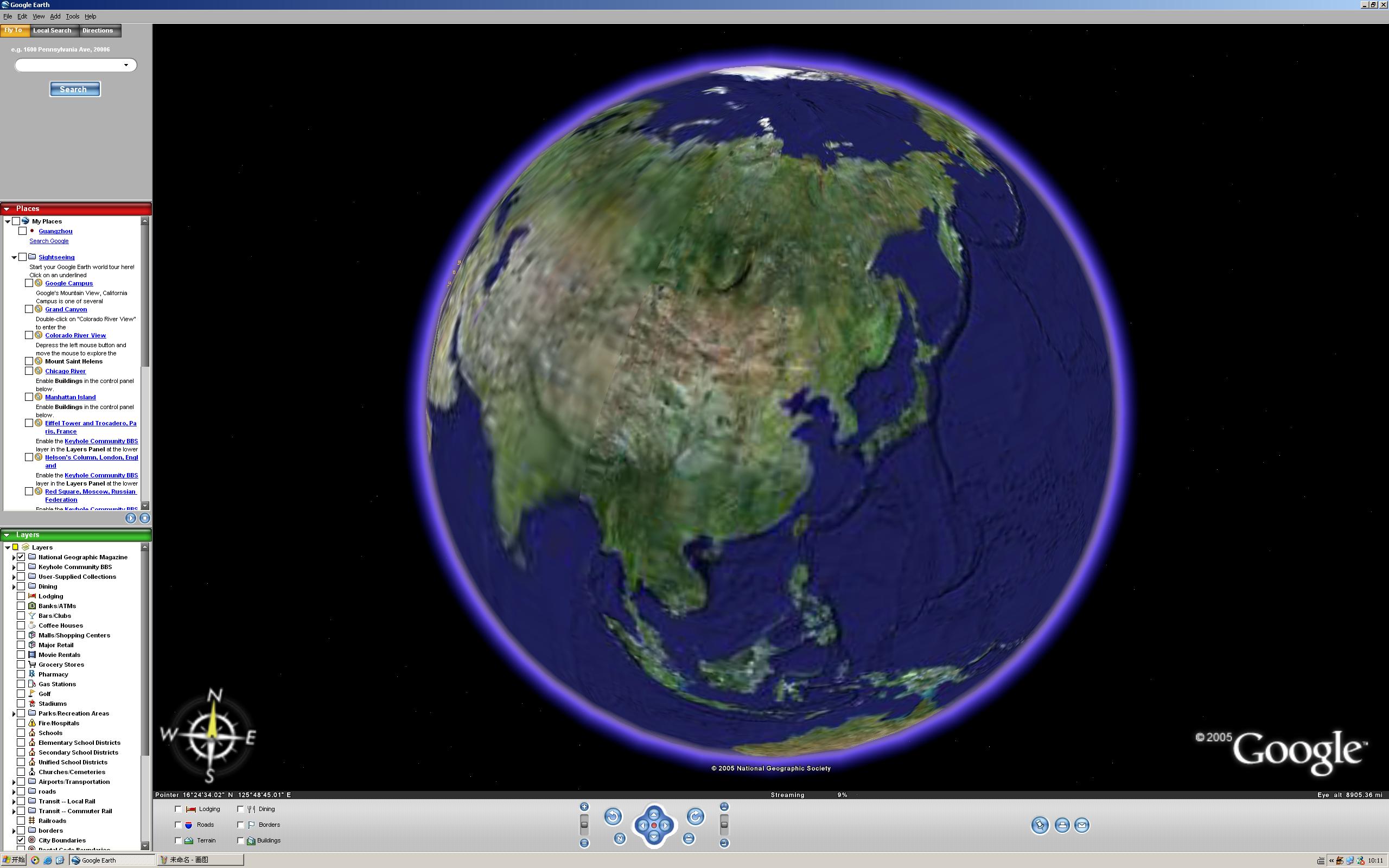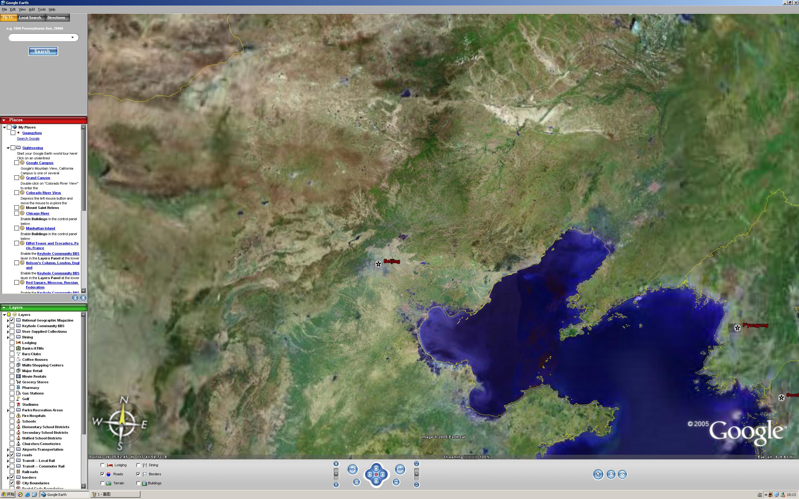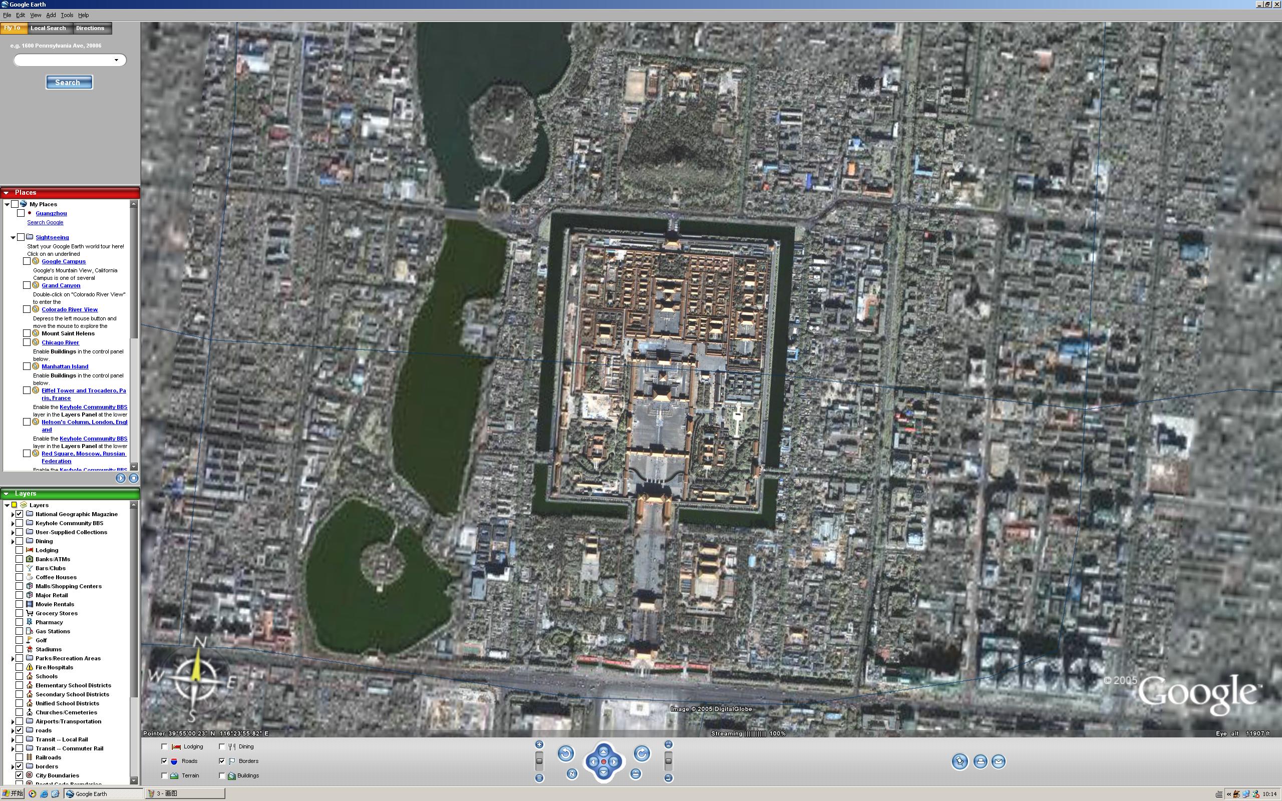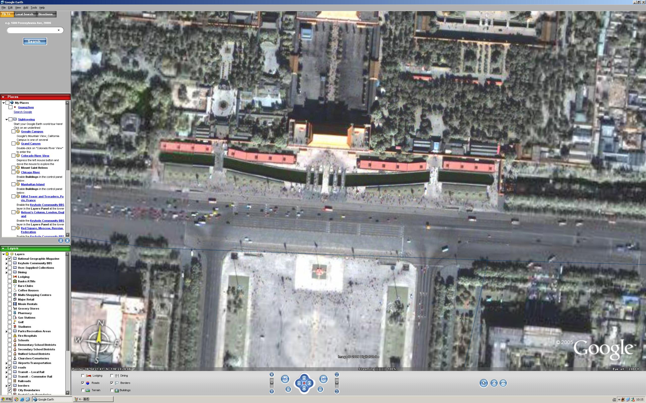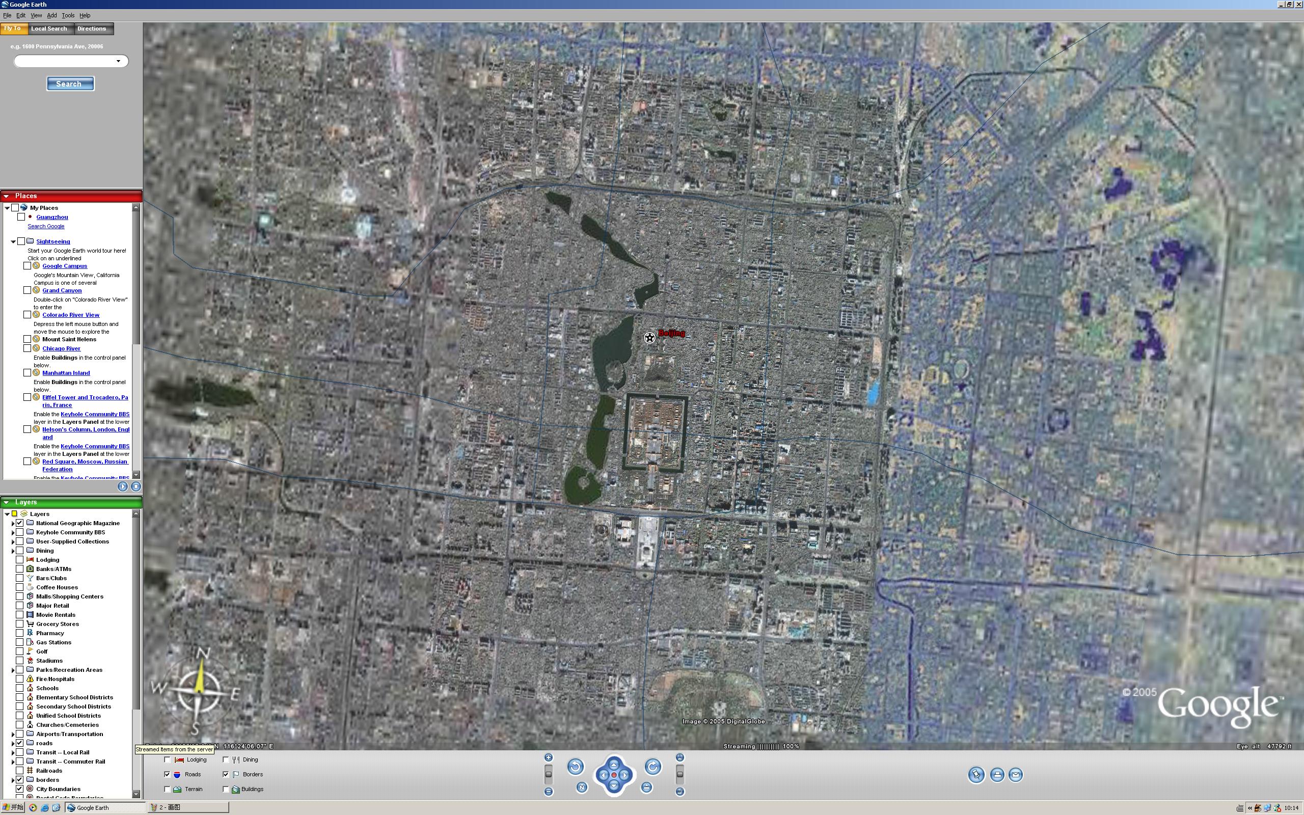 另外还在地图的左下方显示了当前地图的比例尺,最高能达到0.1公里。这些都是Googel本地搜索目前没有的功能。