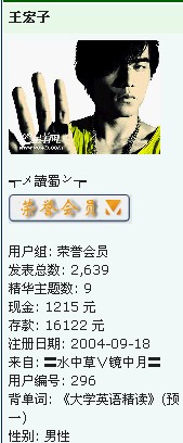 QUOTE(非你不娶 @ 2005年09月26日 Monday, 02:01 AM)