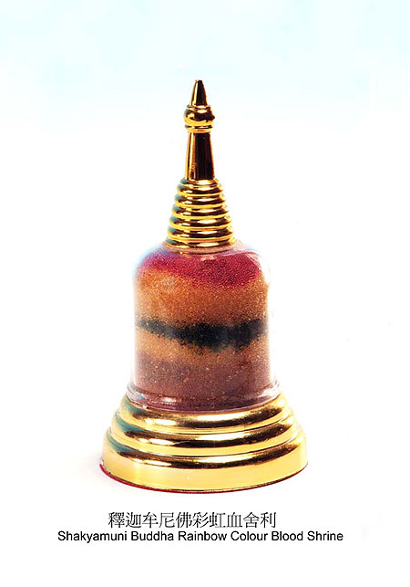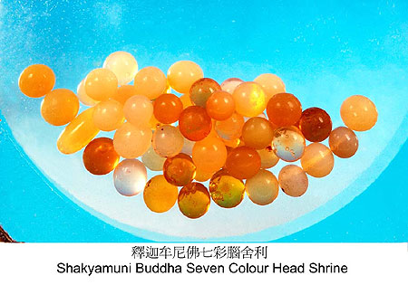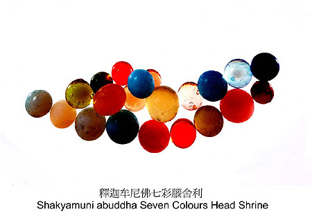 又据《法音》杂志1993年8月号报道,沈阳实胜寺藏传佛教高僧79岁的召乌吉大喇嘛于1993年5月7日无疾圆寂,火化后遗骨中有珠状物,呈多种颜色,并有红、绿、白等色的结晶体数十枚,大的如黄豆粒般,小的则如米粒大小。经专家鉴定,属五彩舍利,系多年不见之物,堪称国宝。除此之外,还有若干大小不一、形色如珊瑚的舍利花。