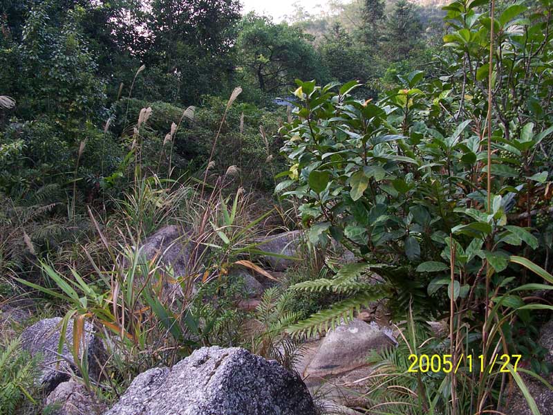 有种叫山杜鹃的花,一般长在河边河滩这些地方,不是人们种植的那种,很漂亮的,没拍到可惜了。鹅凰嶂顶有种竹子长不高的,挖回家栽作盘景很合适。听说山上还有兰花,有人挖回家栽培。不过山上也有大茶根,弄错了毒死人。