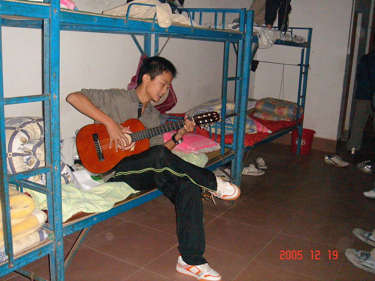 M-BOY的设备多好啊,他们不用初赛就直接入选了,但我们....这句话是柯位说的,当时我也很紧张."既然深不去了,那我也不去了".呵,这是景清说的.我记得我们的信心真的很糟糕.还有的是,我在中途因为一些事情差点放弃.起初我们真的对这组合很无所谓,像随意取舍的拨片,幻想着,天真地.很快就过去了3个星期,记得我们当时还借14班那笨重的吉它练,一切一切发生的由舞台上所演奏的和弦和华彩,起伏高低的旋律,随着风,传到每个人的听觉神经.