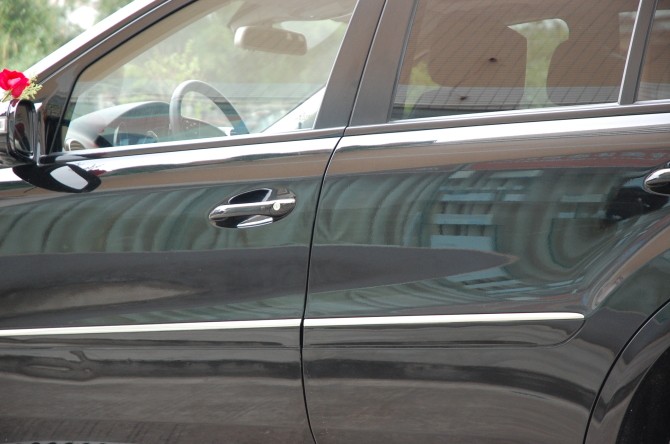 2009年9月30号那天,在那霍三渡谢村路口惊现出世界各名车接亲!接亲车队有奔驰ML500,保时捷GTS,宝马750,奥迪Q7,还有5辆丰田各种系列陪衬车!到底是谁家有喜事????!!不到50分钟后又有悍马开入!!(下面是在行车中照到的奔驰ML500)