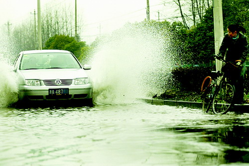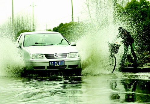 你好!“487××”。我是快报摄影记者傅拥军,很凑巧,你昨天下午在杭州复兴路上驾车驰骋,飞溅的水花,毫不留情地泼向路边的一位弱女子,她哭了。 我拍下了全过程。也许你不会相信她会流泪,但你一定要相信,除了泪水,更多的是你溅起的脏水,在她痛苦的脸上流淌。 你知道吗?当你飞速驶离现场后,那名弱女子浑身都湿透了,在冷冷的寒风里,她直打哆嗦。我必须告诉你的是,她当时并没有骂你,我看见她涨红着脸,不停地抹去脸上的泪水和脏水。 我们的编辑将你的轿车局部放大,你的车牌号码、特别是你和你身边的乘客当时的表情<开怀大笑),一目了然,让我备感痛楚―――这就是文明的杭州? 我不知道,当这个女子出现在你面前、当你的车已经水花四溅,你的车为什么还要那么快?我知道你是一个男人,你的“勇气”、你的一往无前,留下的却是弱女子的无力招架和无助的哽咽。