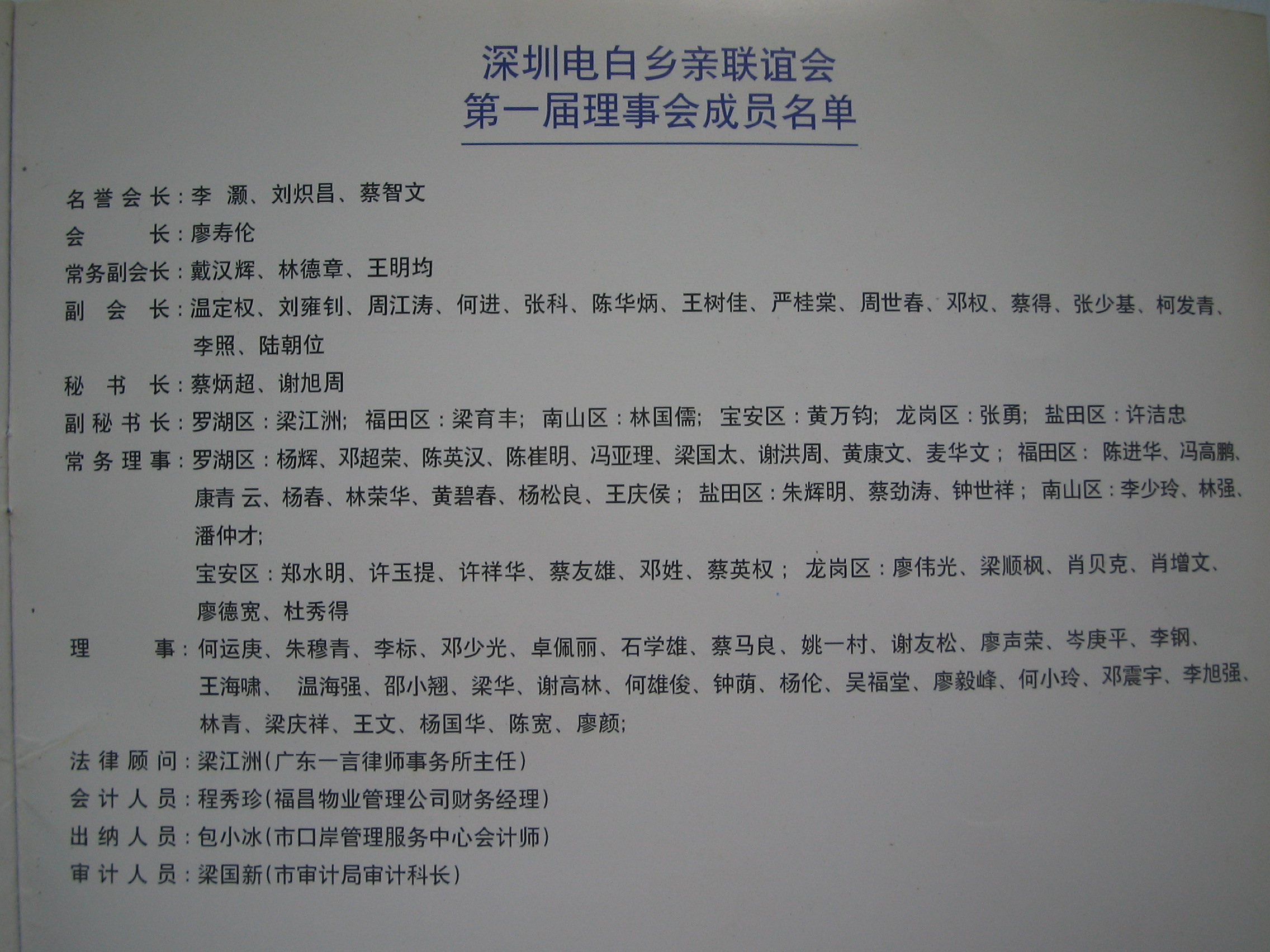 第一条 本会定名为深圳电白乡亲联谊会,是由电白乡亲自愿组成的、不具有政治联盟特点的一个地方性群众组织。