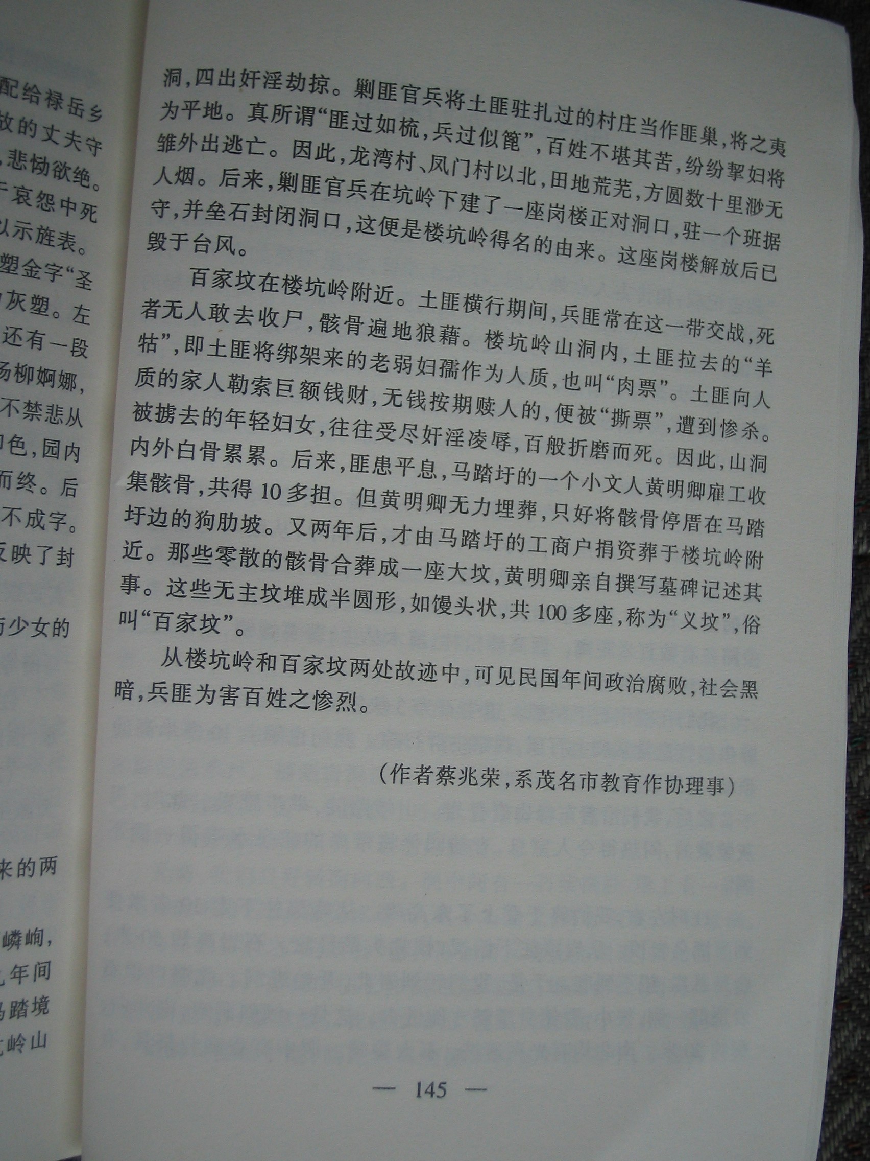 我所说的“杨校长”就是“王孔昭老师”,真抱歉,我记错了他的姓!(汗……)他是凤门人,凤门杨姓多,错以为他姓“杨”了。我父亲跟邱总队、叶国雄是长山小学同一时候的老师,他们我也认识。蔡兆荣和我同村,是我的父辈,看过他的《村言集》,曾经想过和他商量一下收集电白地区的歌谣和传说、故事,但因俗务太多,只好放弃。好遗憾!