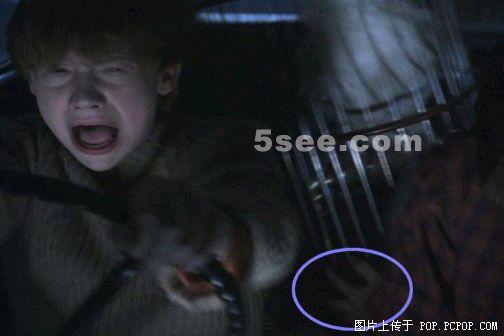 68、哈里波特左手按在伤口上和ginny说话,当时手背有着血污,随着镜头拉近,血污消失了。