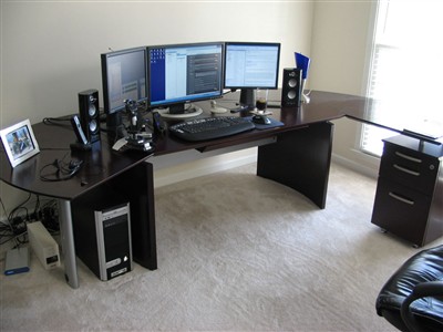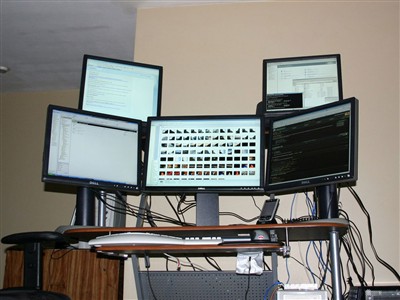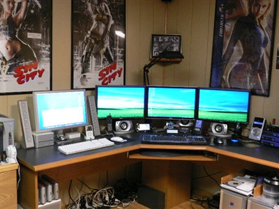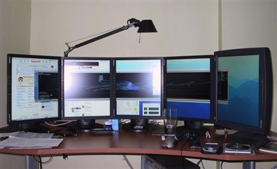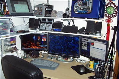 我们还在奢望着能拥有一台24英寸的液晶显示器。不过对于国外的发烧友来说,24寸液晶在他们眼里似乎都不值一提,来看看他们有多“腐败”吧,,N台24寸液晶、多屏拼接……,这些装备早已超出了一般显示器的范畴,当面对这些震撼的场面时,我们也只有叹为观止了