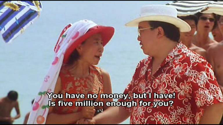 《千王之王2000》中的富婆甜甜,对法拉利说:“你没钱啊?我有,五百万够不够?”