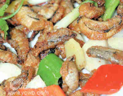 山长水远去到伦教镇霞石村的松皮鸡饭店尝鲜,肯定不会独沽一味黄油蟹,够胆就要试试蛋白质极高的肥竹虫,经椒盐爆炒后口感像会爆浆的薯条。还有广州罕见的当季干煎黄鱼子。这是顺德特产鱼,离水、见光即死,鱼子比鱼本身还重还鲜,8、9月正是多子期,必试。