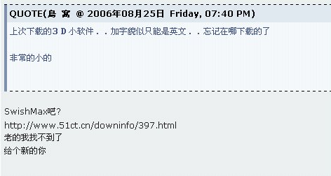 QUOTE(瞬羽痕 @ 2006年09月09日 Saturday, 02:16 PM) 请问这个是灵异现象吗? [snapback]1471955[/snapback] 嘎嘎...不同的呀 版面都差很多。. 3D是非常的小的!!!!非常的简洁..非常的名字叫3D 而楼上的那个呢..不一样啊...名字不一样啊